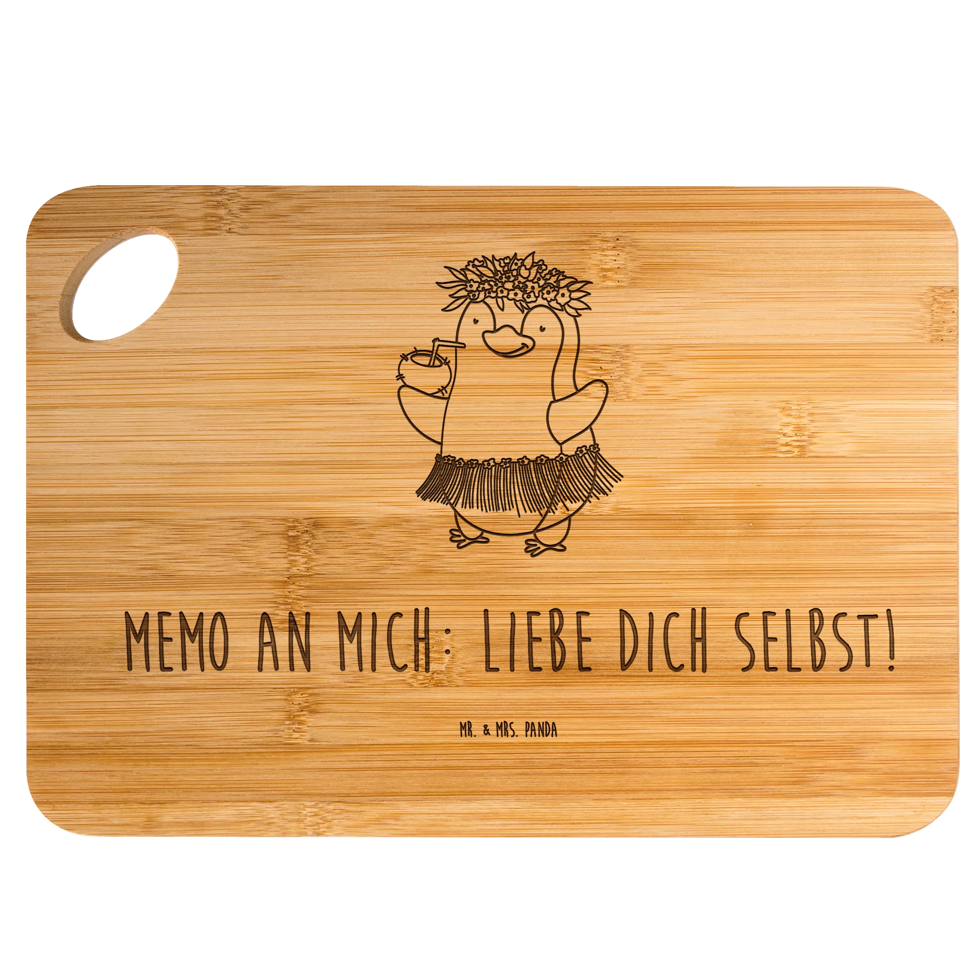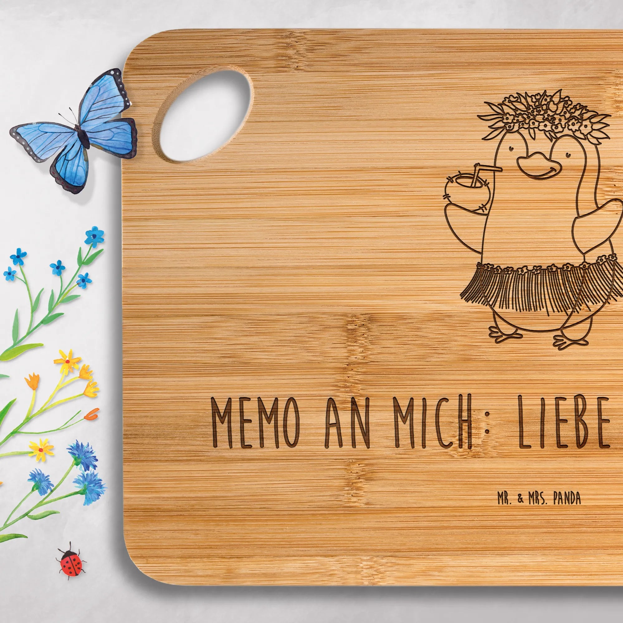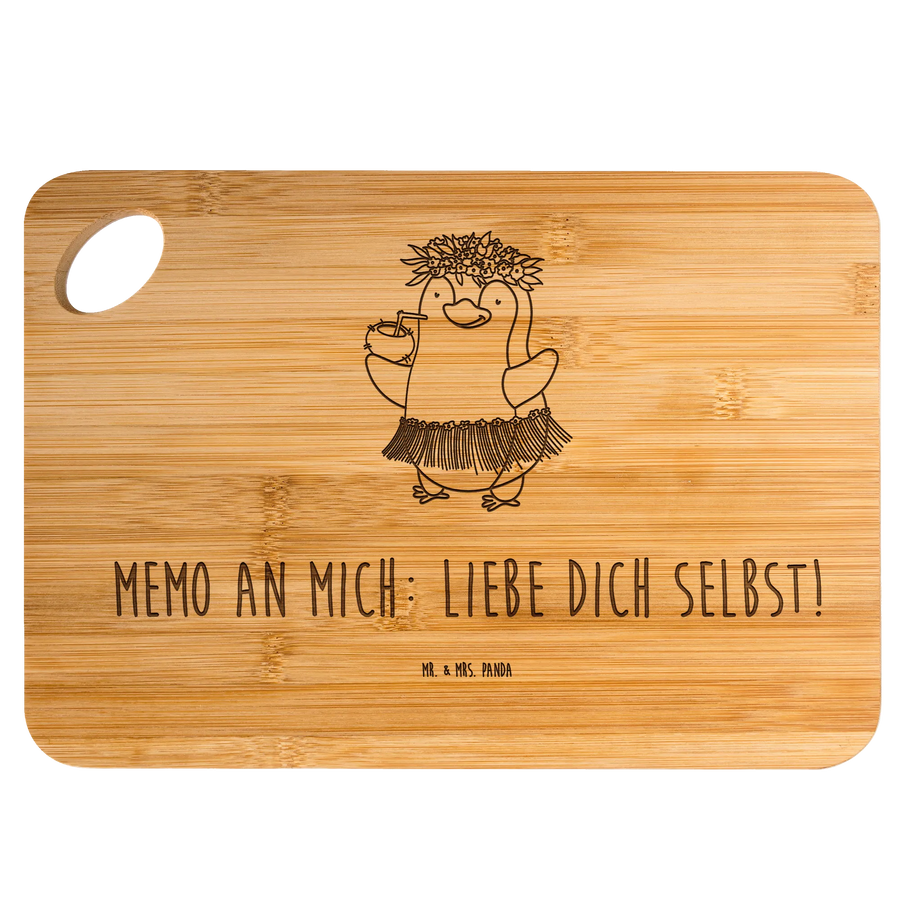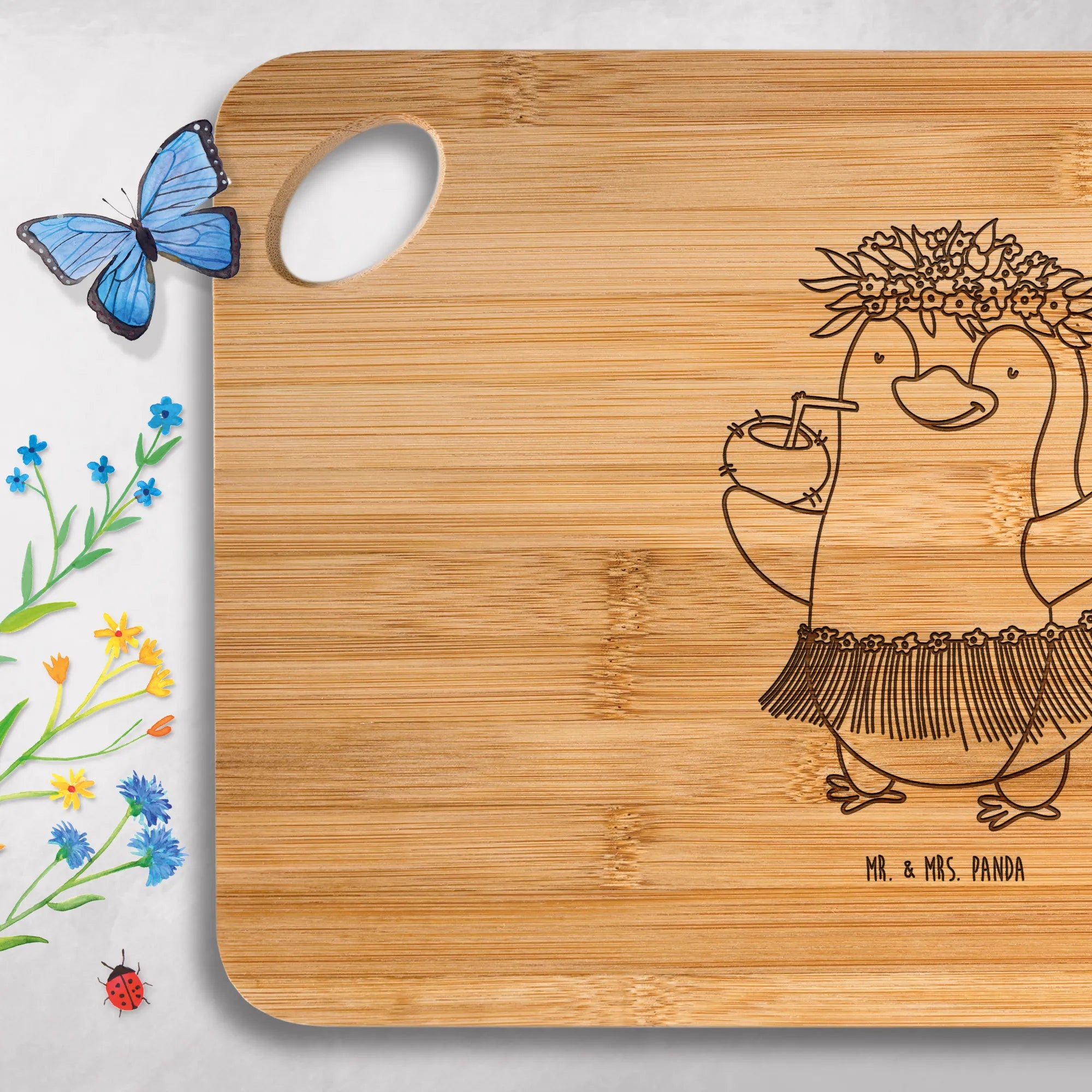 Details auf einen Blick: Pinguin-Motiv mit Spruch, aus der Mr. & Mrs. Panda Pinguin-Kollektion, langlebige Gravur, ideal als Frühstücksbrett, Käsebrett oder Servierbrett. Pflegehinweis: Handwäsche empfohlen, nicht spülmaschinengeeignet.