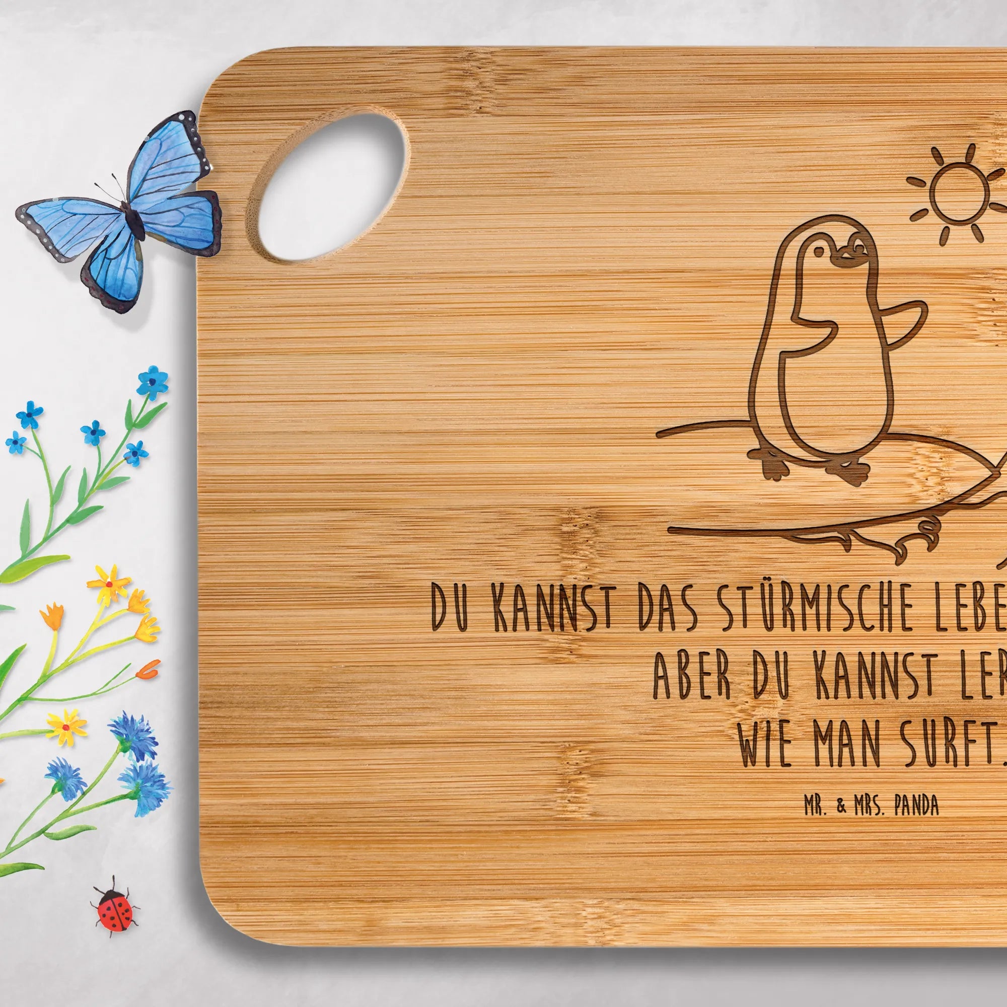 Holzbrettchen Pinguin Surfer - mit Spruch