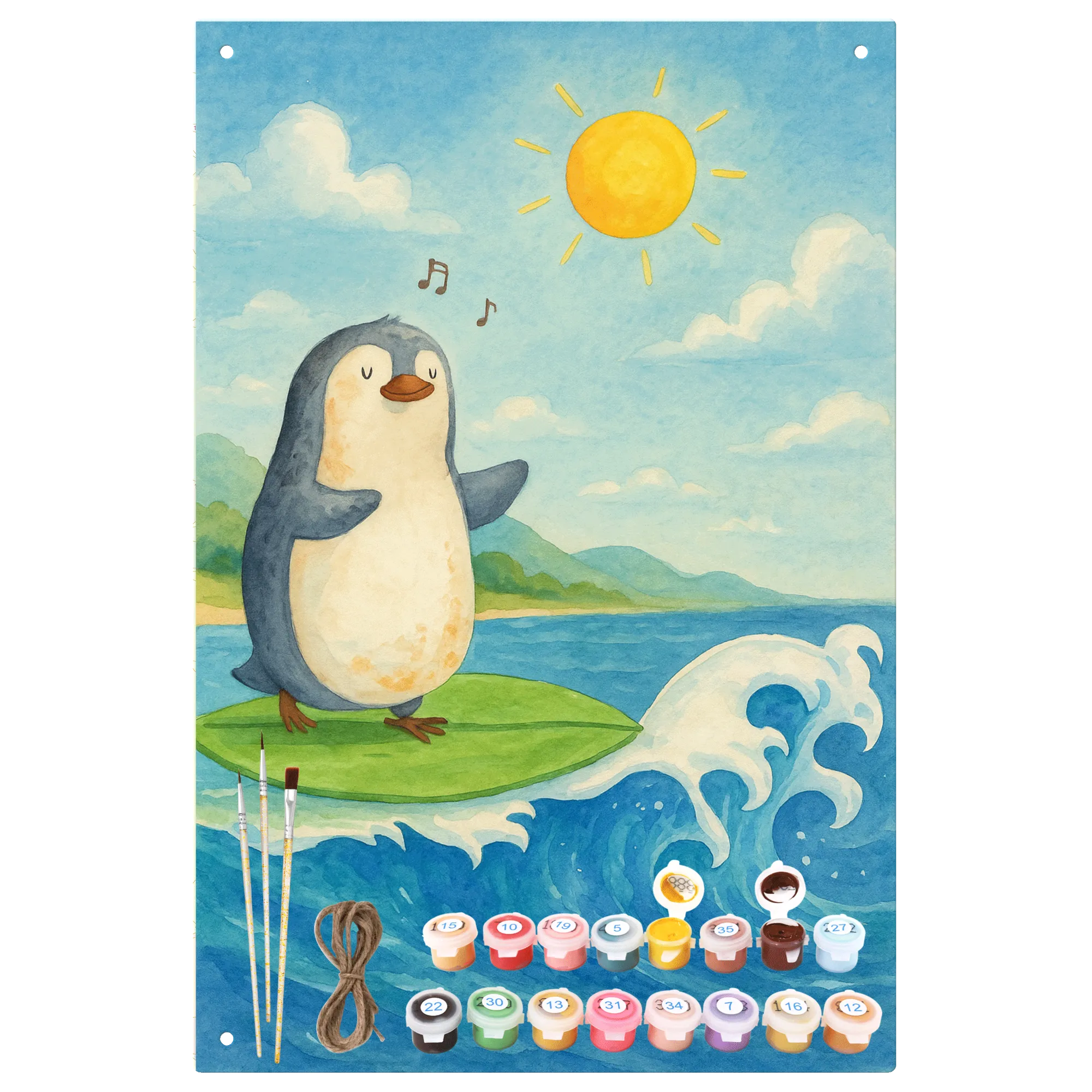 Paint by Numbers Metal Sign Penguin surfer Design