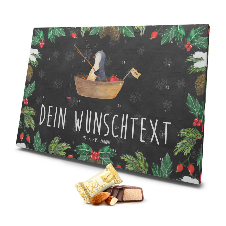 Personalisierter Marzipan Adventskalender Pinguin Angelboot - Schwarz