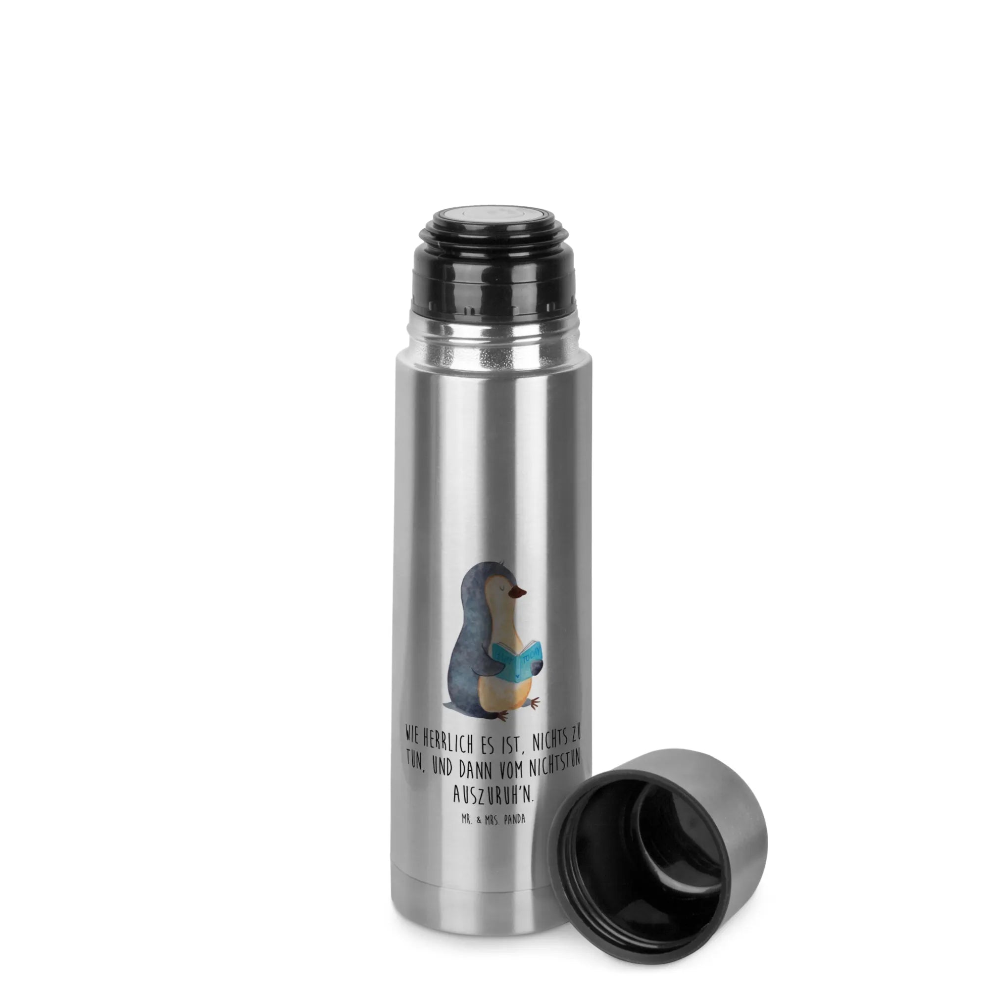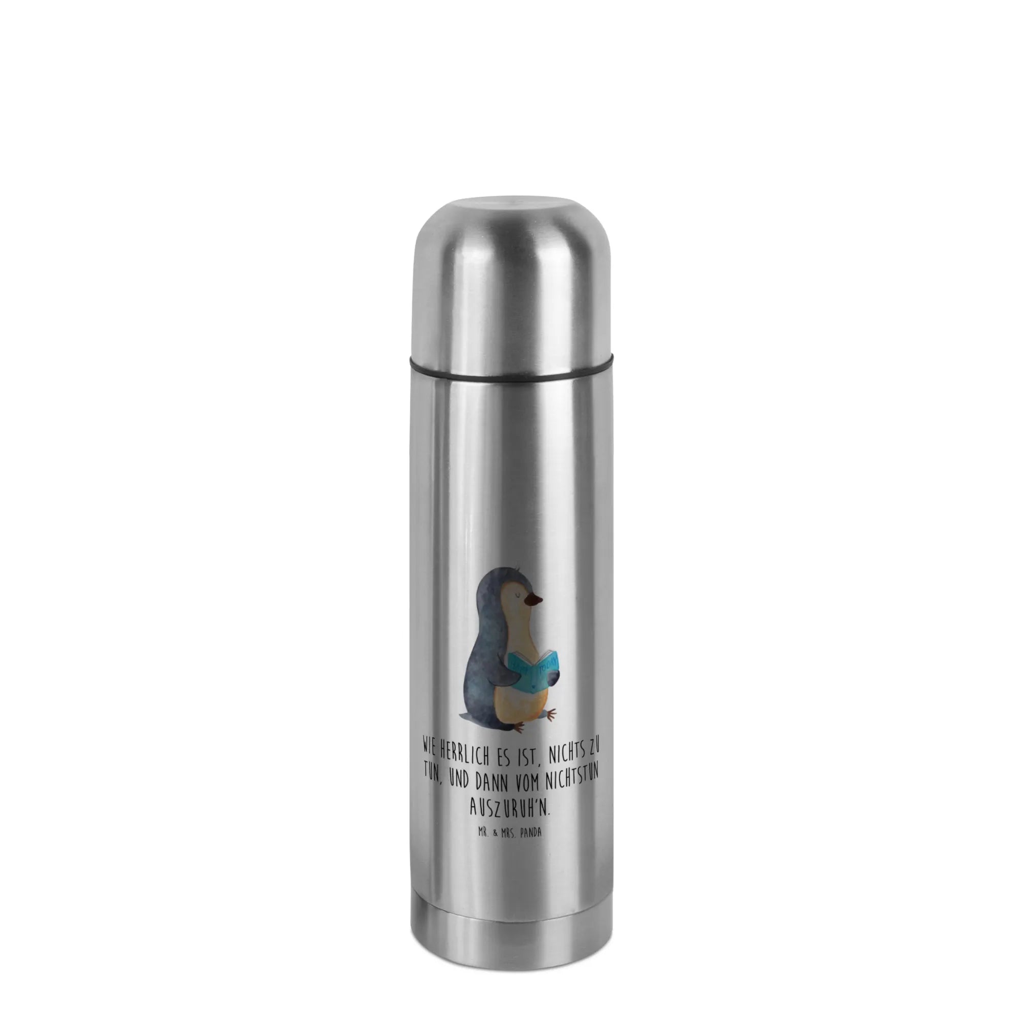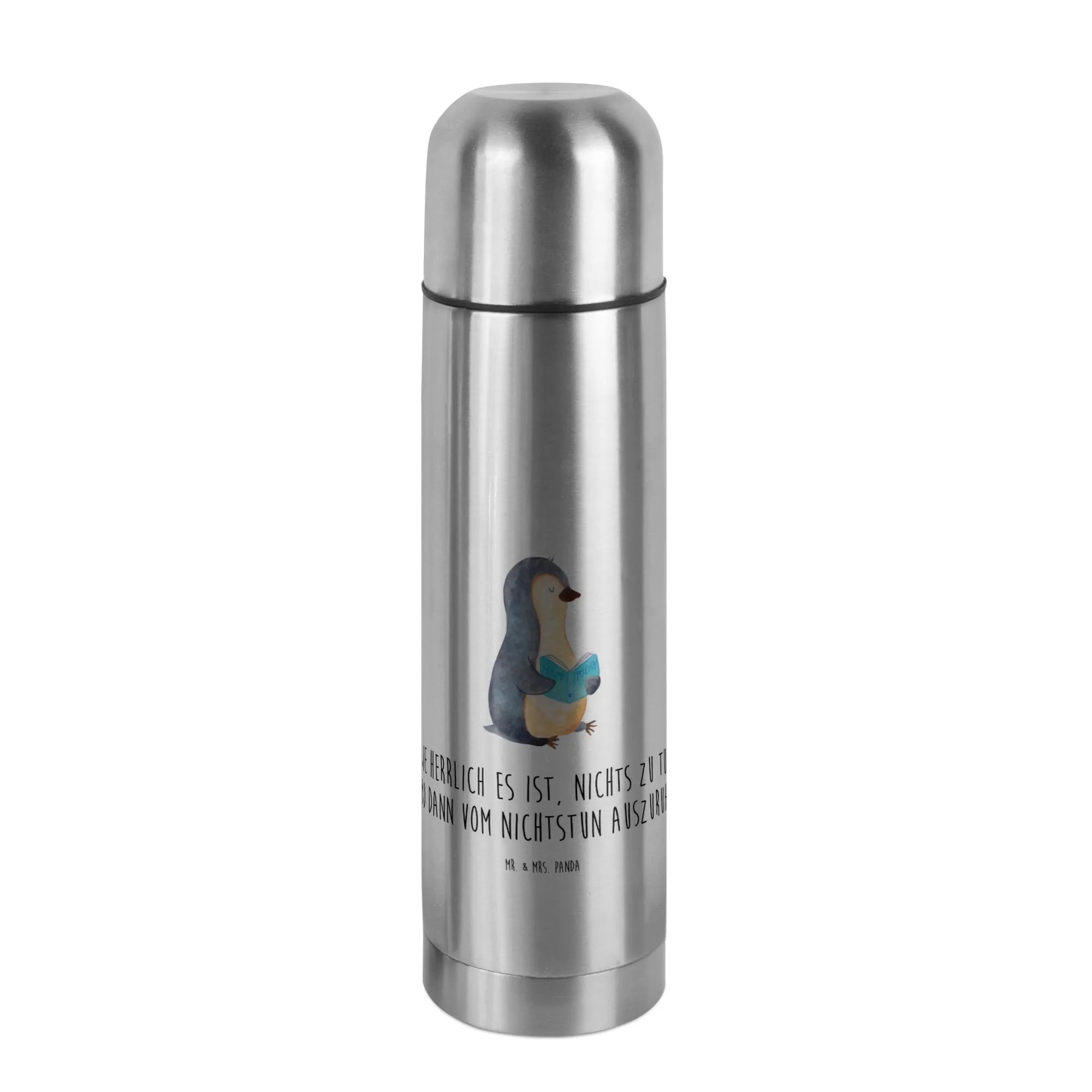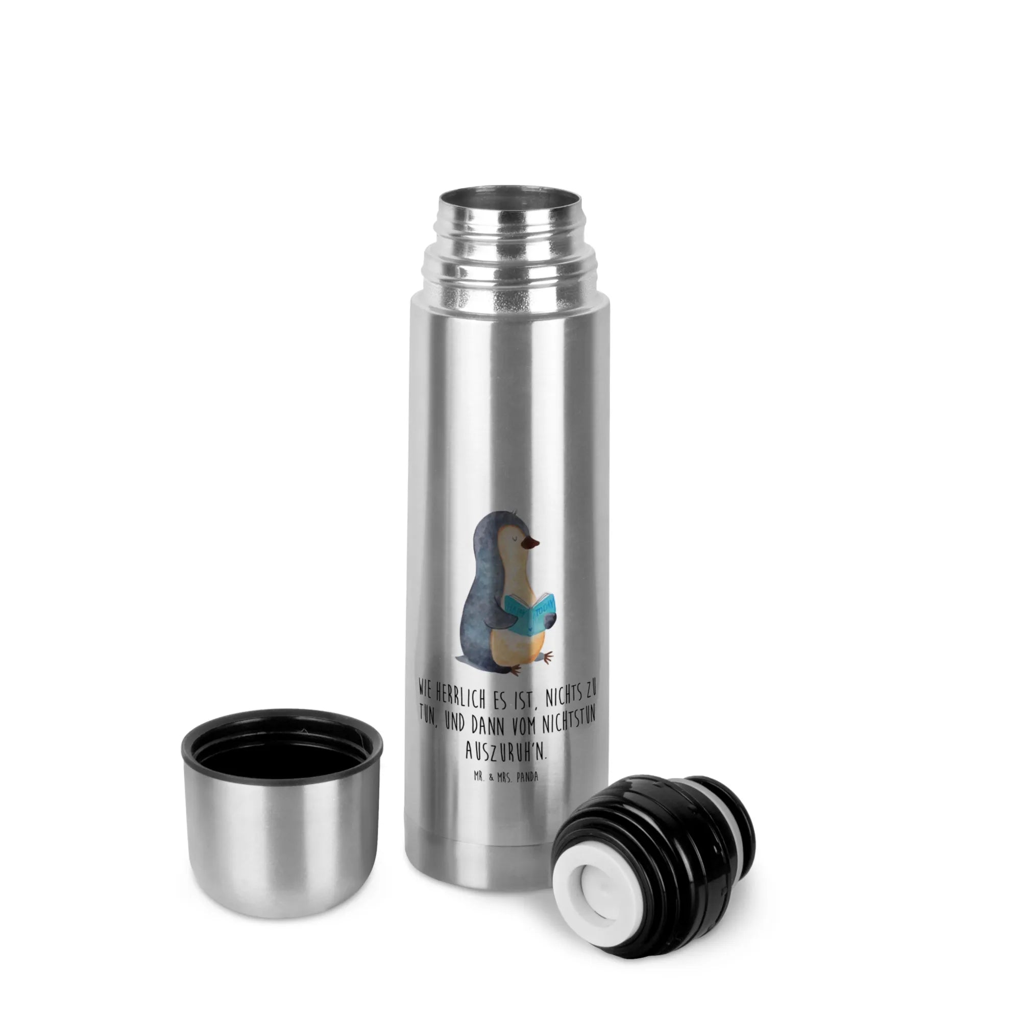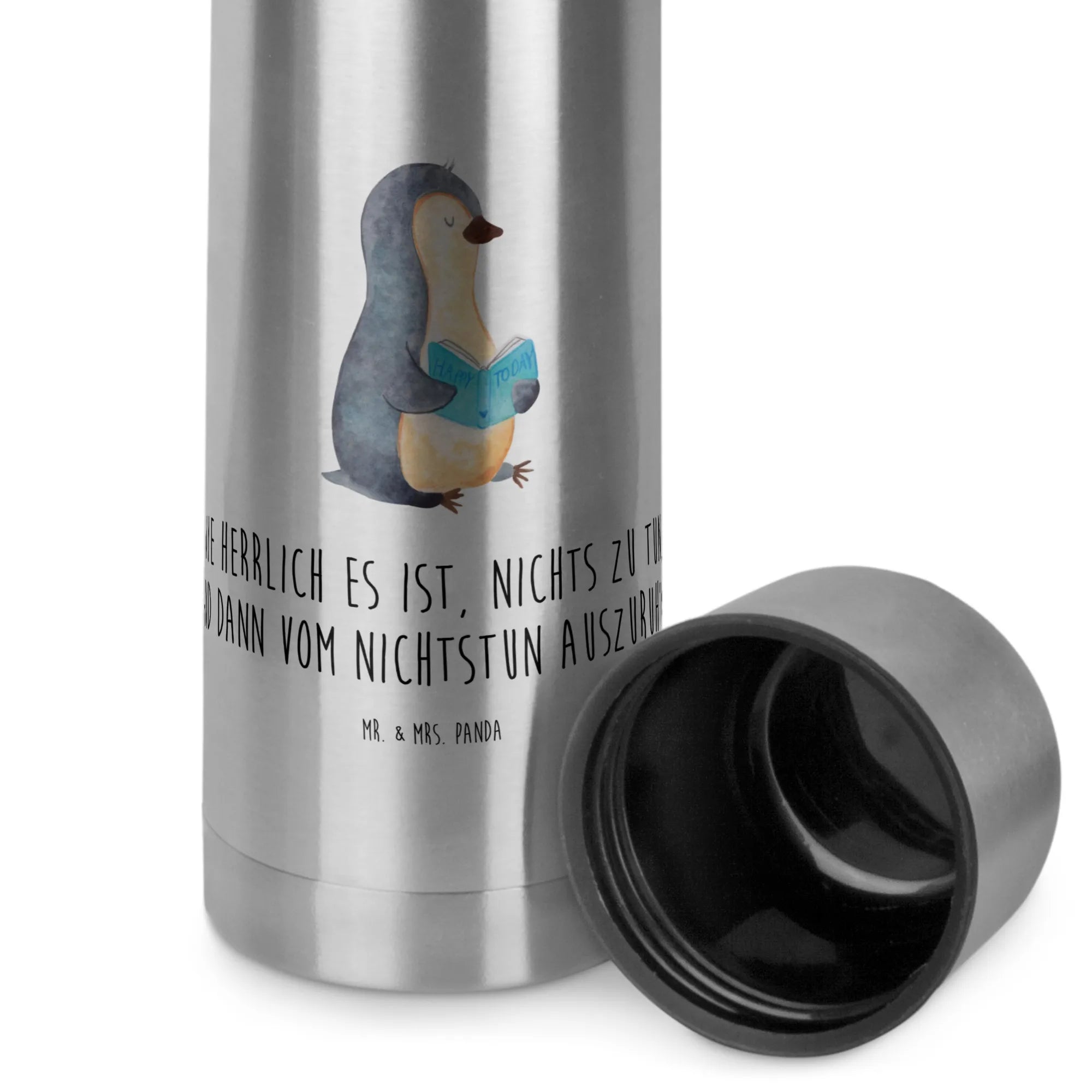 Thermos Flask Penguin A book Thermoskanne, Pinguin, Pinguine, Buch, Lesen, Bücherwurm, Nichtstun, Faulenzen, Ferien, Urlaub, Freizeit
