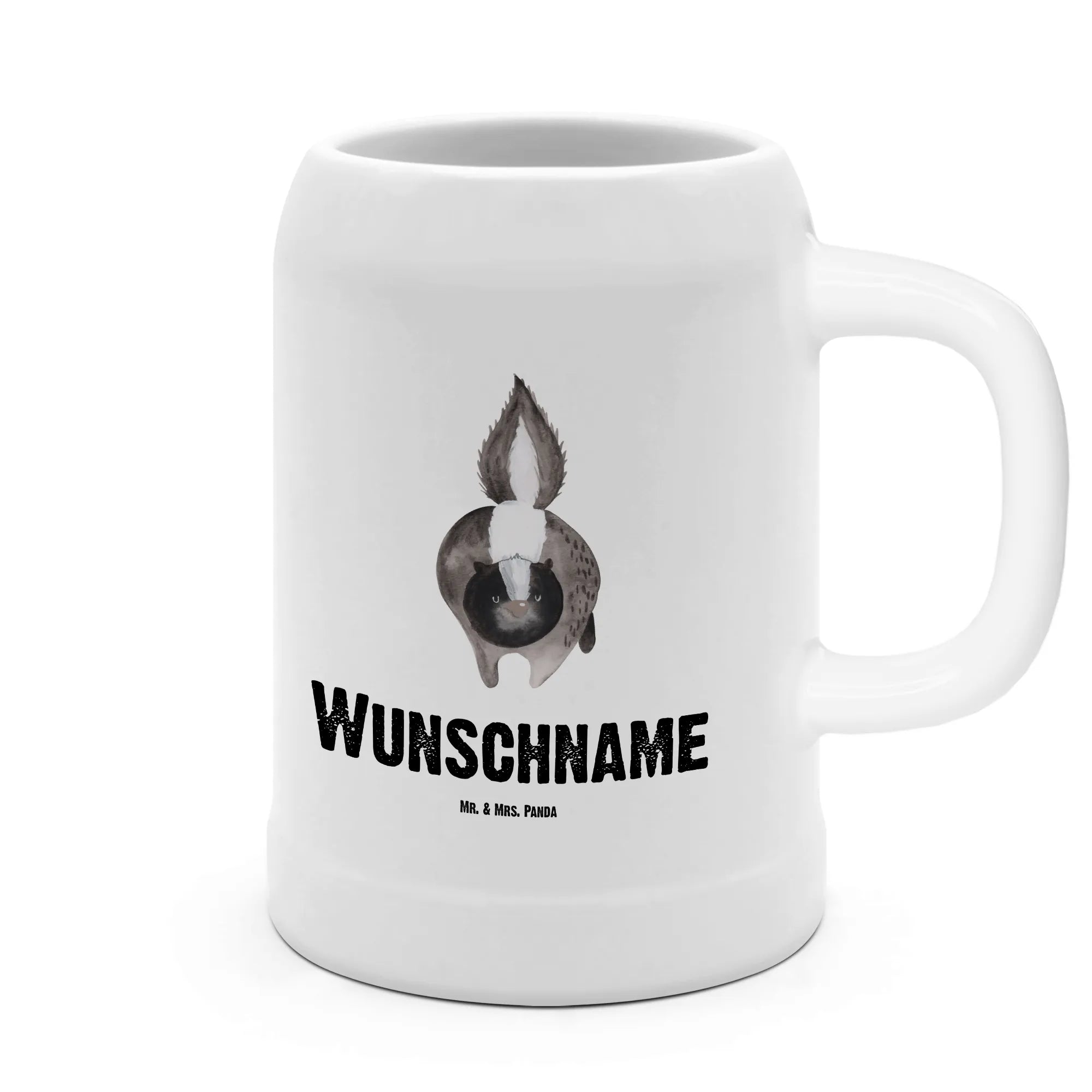 Personalised beer mug skunk attack