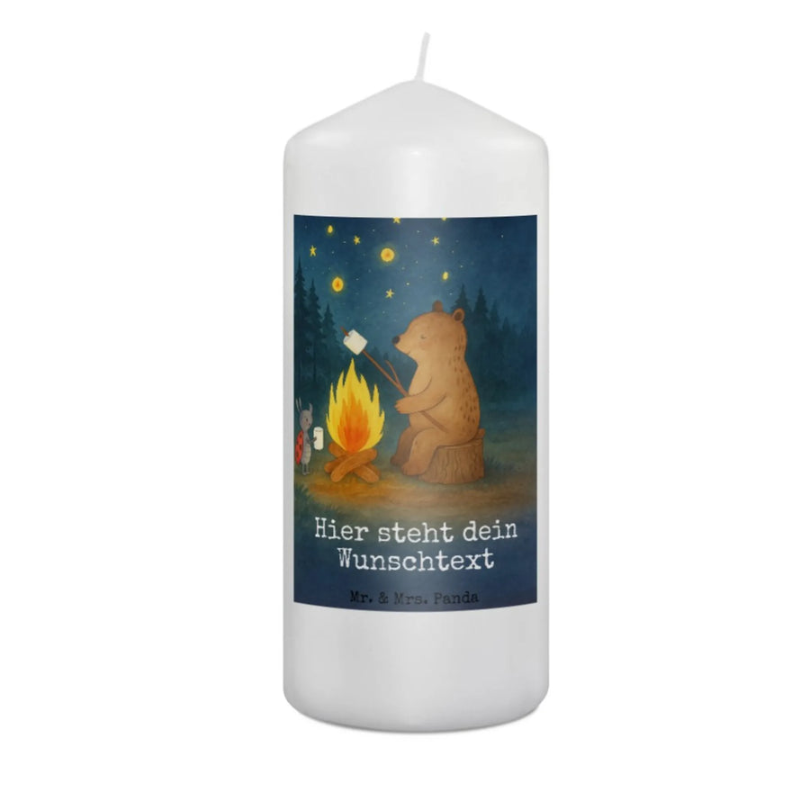 Personalisierte Kerze Bär & Marienkäfer Lagerfeuer Design - 19 x 8 cm