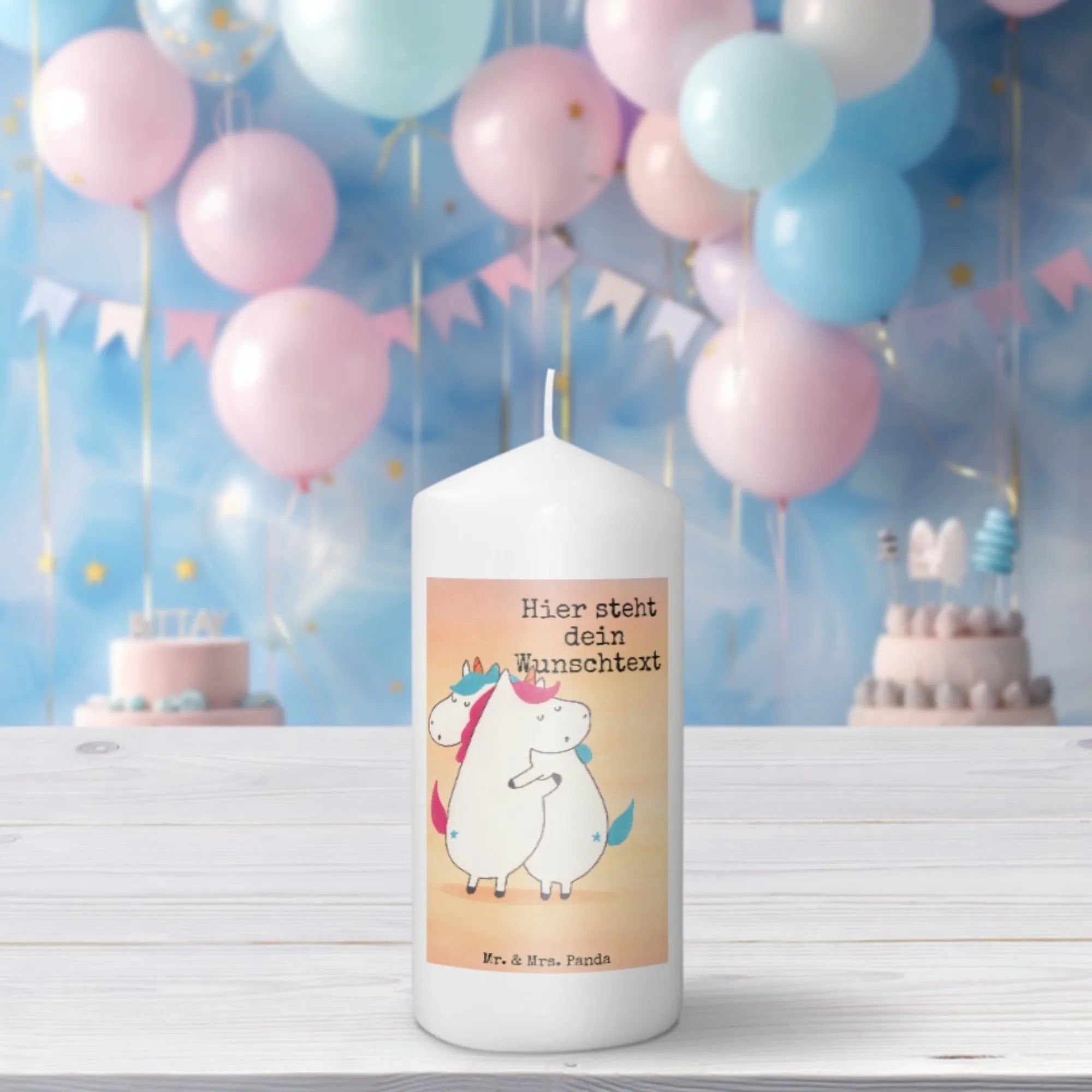 Personalisierte Kerze Einhörner Umarmen Design – Mr. & Mrs. Panda