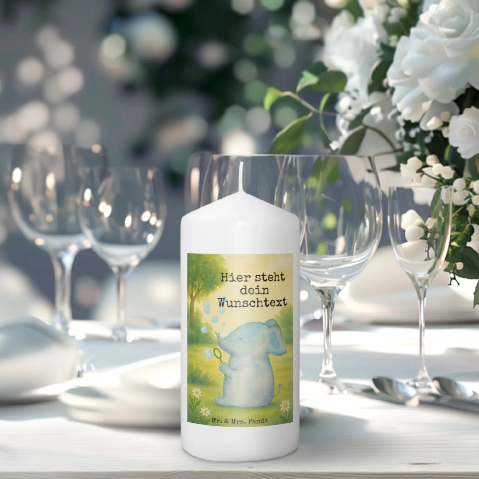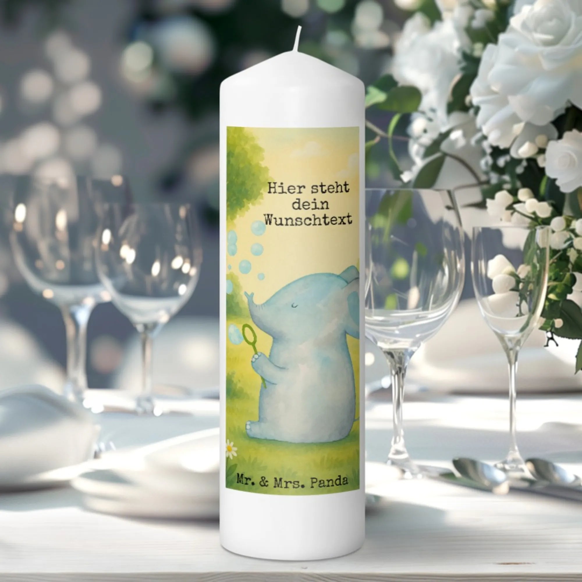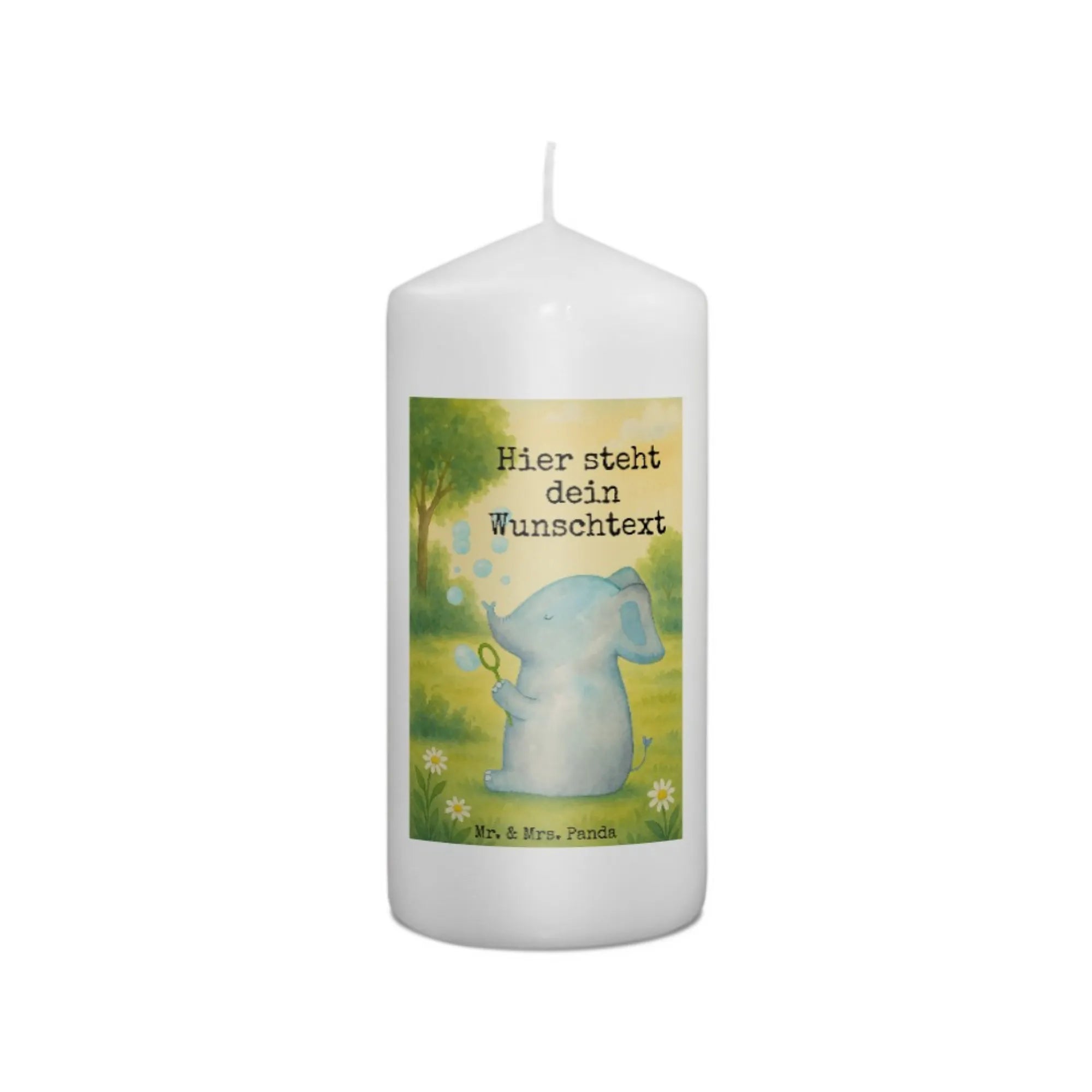 Personalisierte Kerze Elefant Seifenblasen Design – Mr. & Mrs. Panda