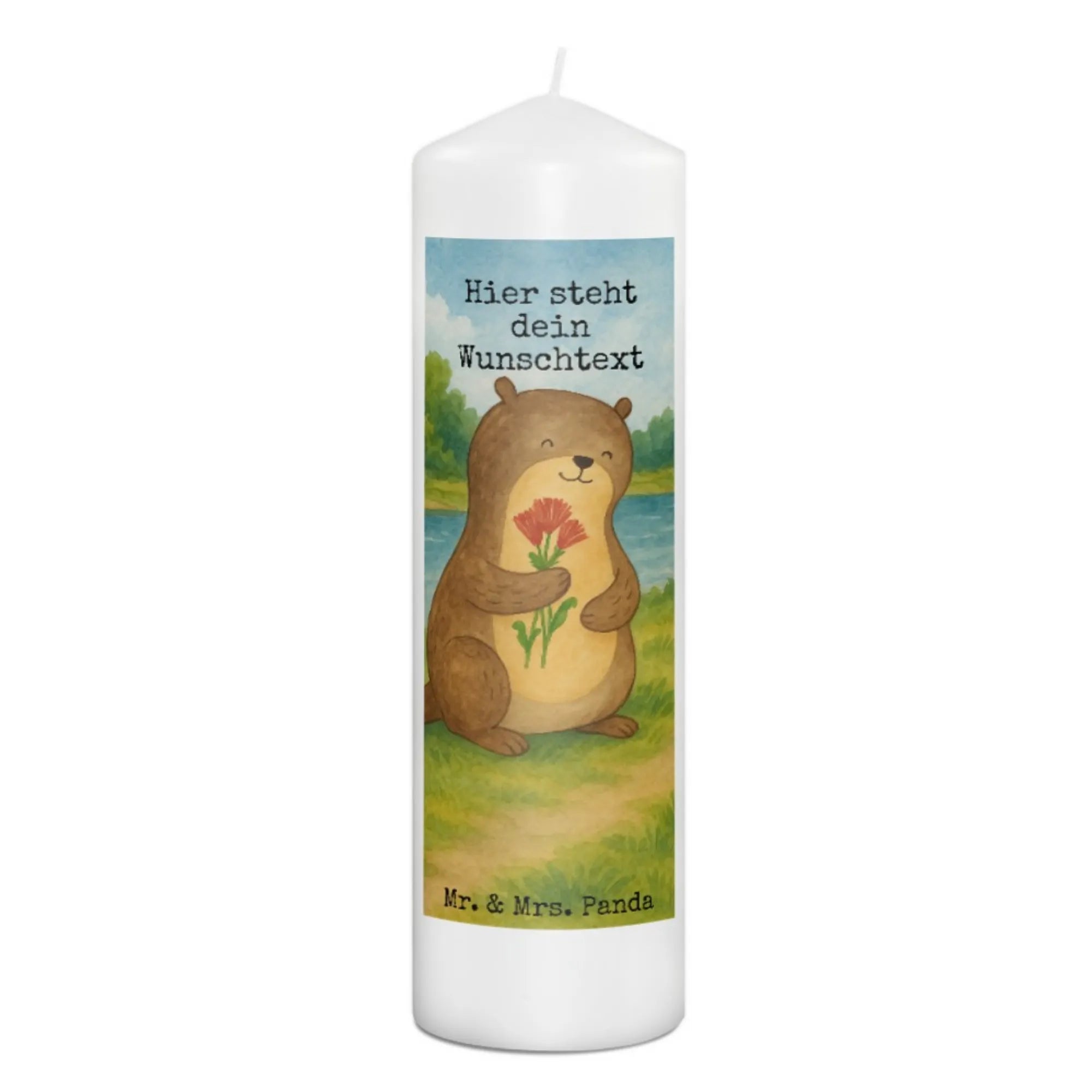 Personalisierte Kerze Otter Blumenstrauß Design - 19 x 8 cm