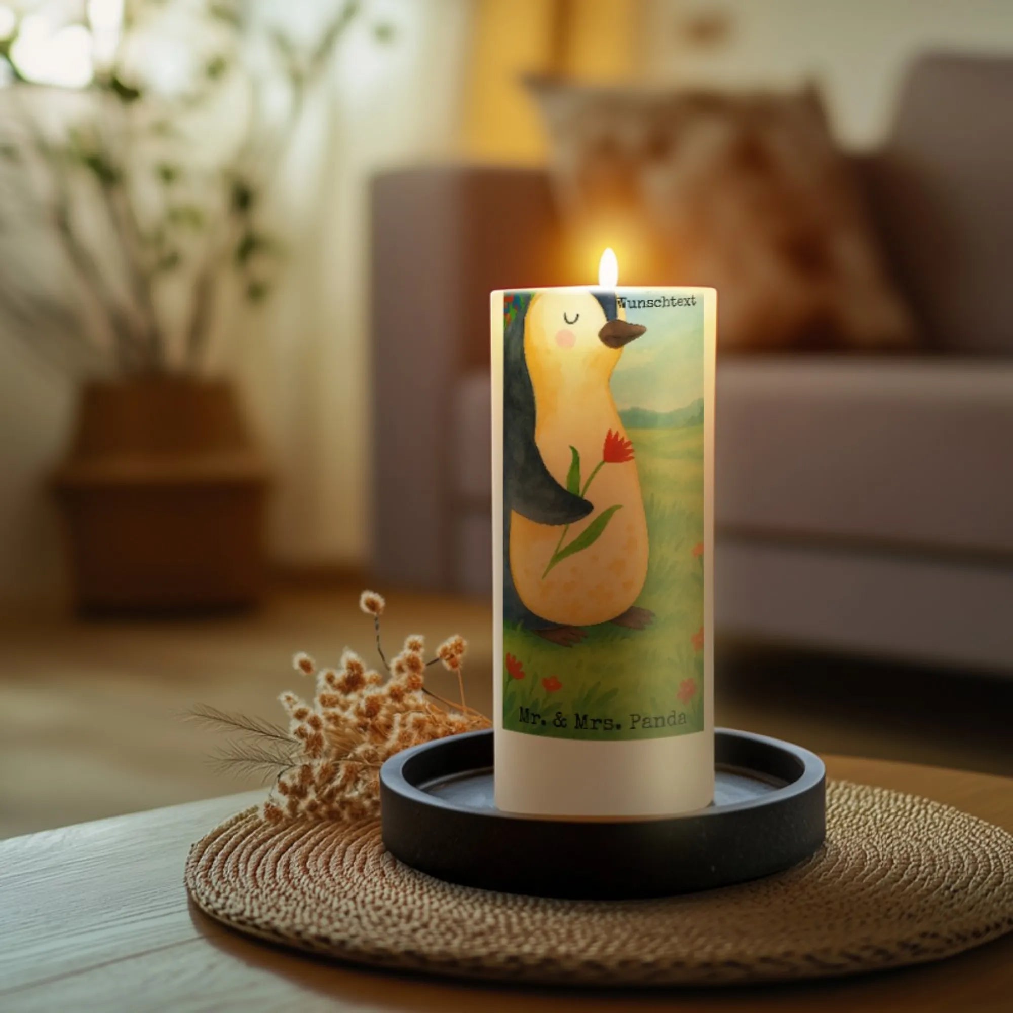 Personalisierte Kerze Pinguin Blumen Design - 29 x 8 cm XL