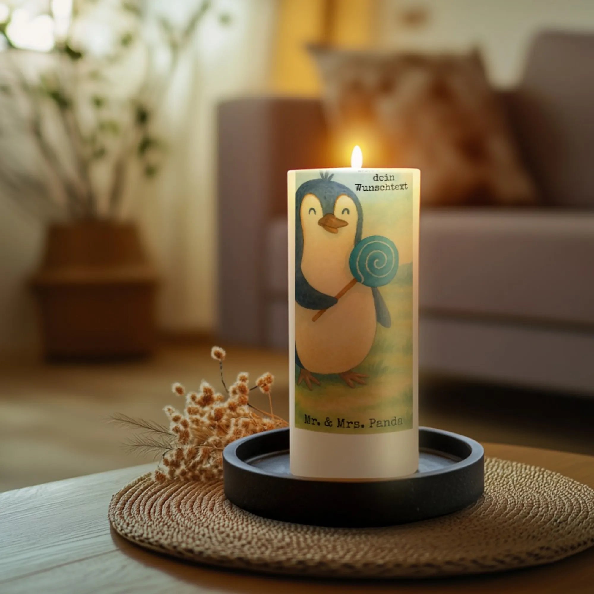 Die personalisierte Kerze von Mr. & Mrs. Panda ist ein echter Blickfang in jedem Raum! Gefertigt aus hochwertigem Parafinwachs ist sie 290 mm hoch und hat einen Durchmesser von 80 mm. Diese Kerze kann mit deinem gewünschten Namen oder Text personalisiert werden und eignet sich wunderbar als Geschenk zu besonderen Anlässen wie Geburtstagen und Jubiläen. Die besondere ultralange Brenndauer sorgt für viele stimmungsvolle Stunden. Diese Kerze ist nicht nur schön, sondern auch vielseitig: Du kannst sie als Trauerkerze nutzen. Das besondere Motiv auf der Kerze schmilzt beim Abbrennen und verleiht eine zauberhafte Note. Achte auf sanfte Pflege mit Reinigungsmitteln, damit die Kerze lange hält. Hole dir die personalisierte Kerze von Mr. & Mrs. Panda und mache jeden Moment festlich!