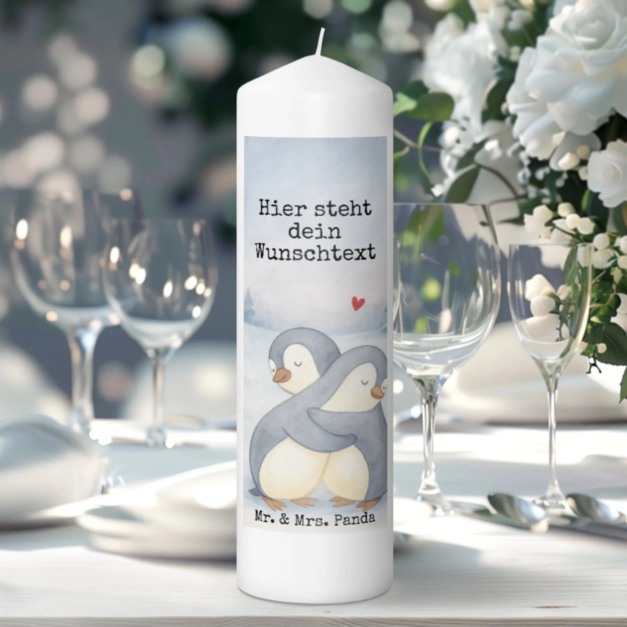 Personalisierte Kerze Pinguine Kuscheln Design - 15 x 7 cm