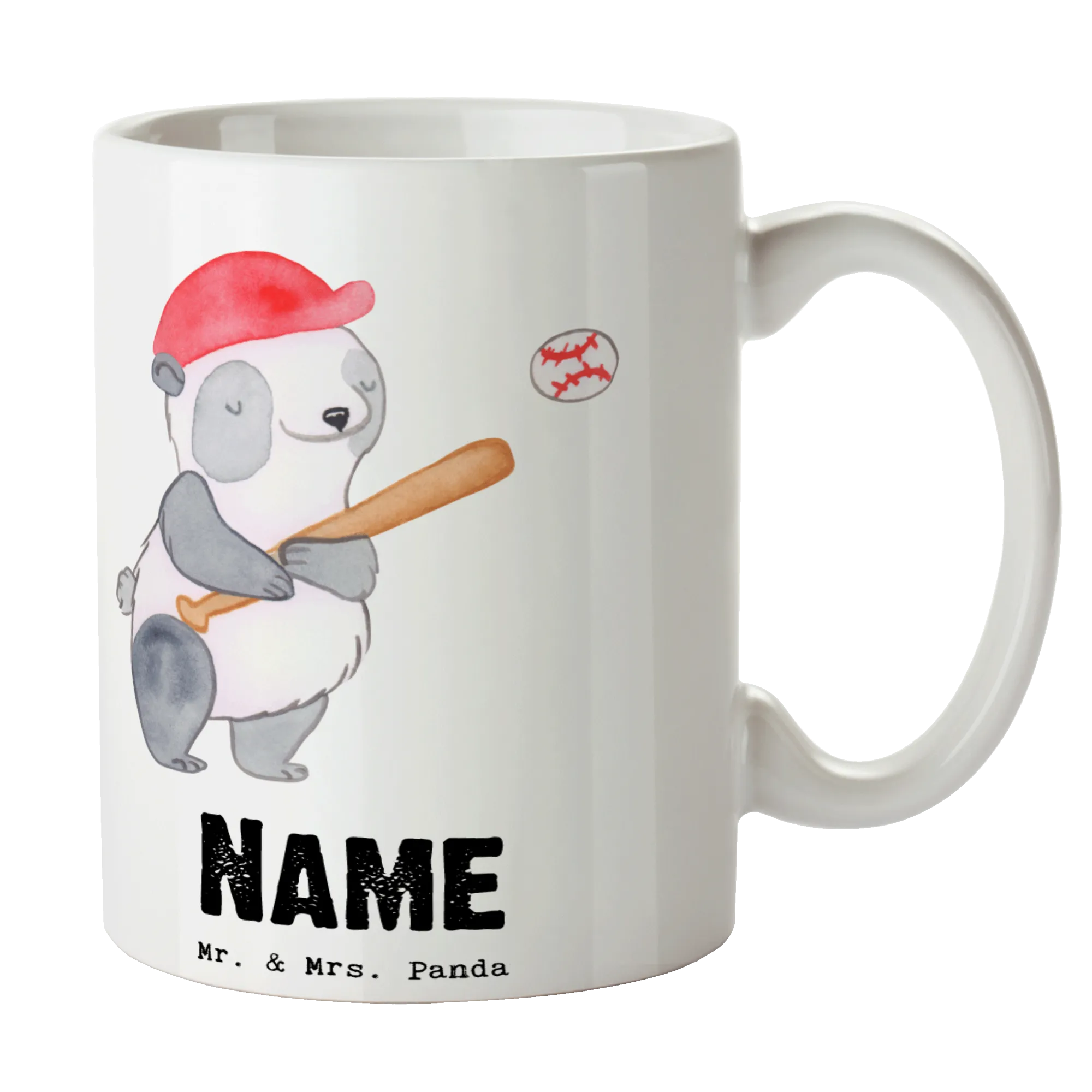 Personalised cup panda playing baseball
