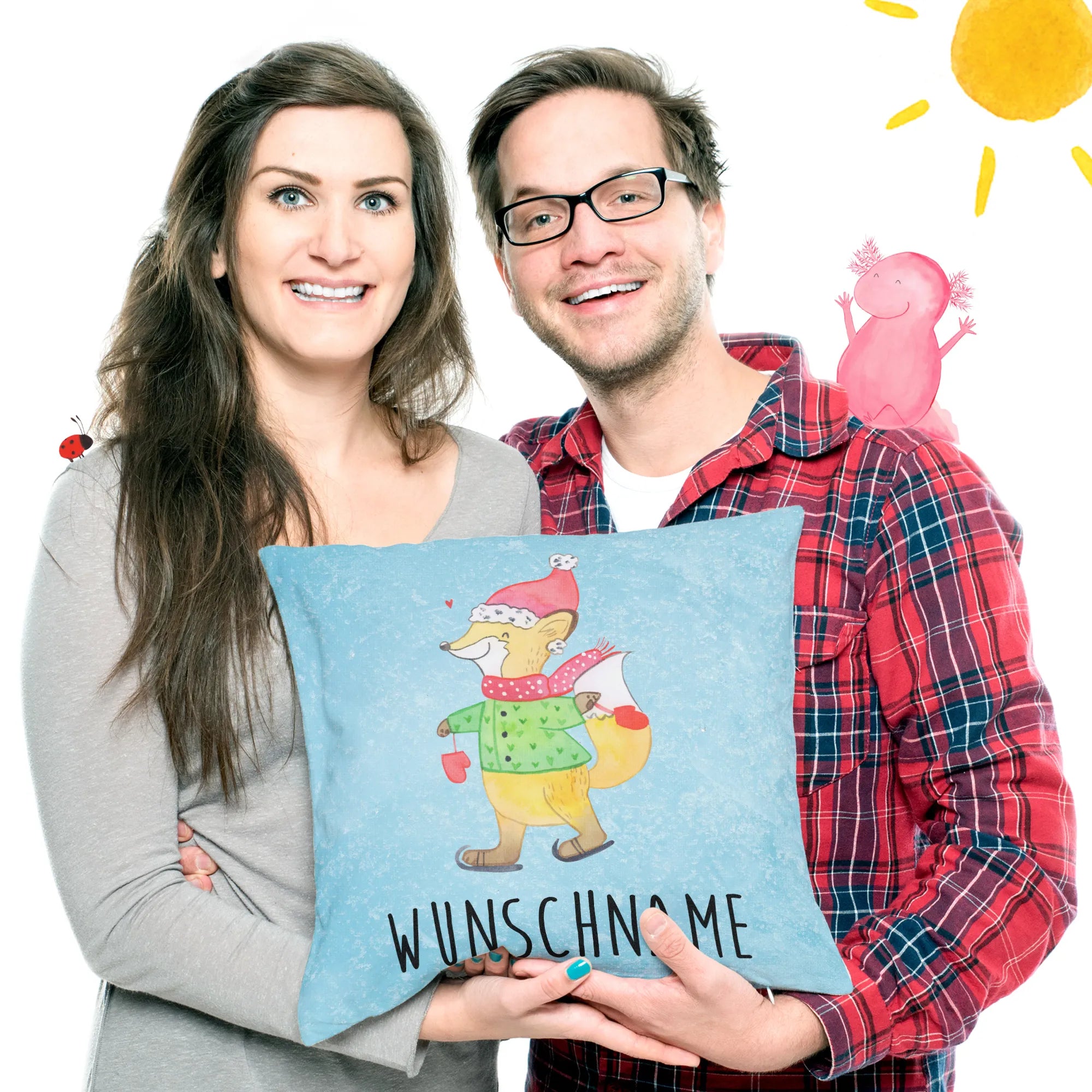 Personalised cushion Fox skates Winter, Christmas, Christmas time, snow, christmas time, winter, christmas, christmas days, christmas present, santa claus, fir tree, christmas eve, christmas tree