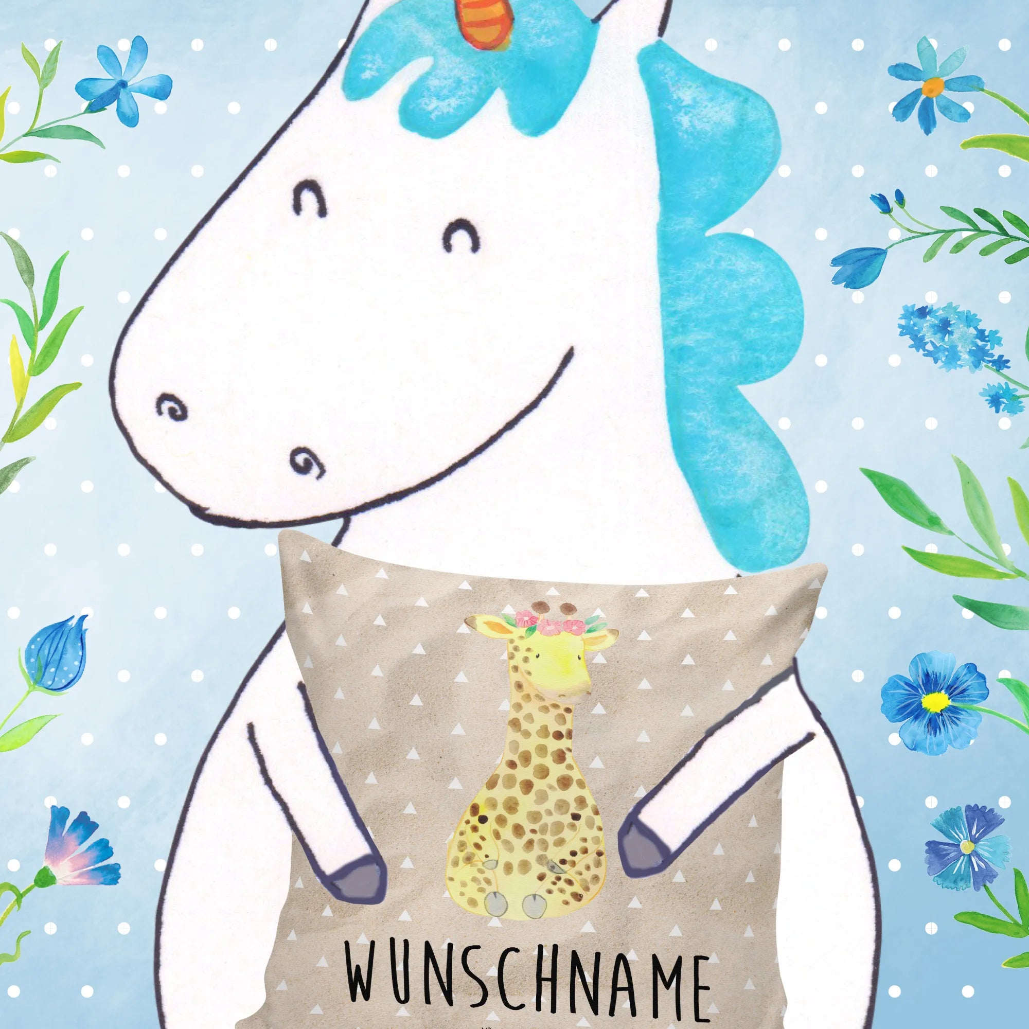 Personalised cushion giraffe flower wreath