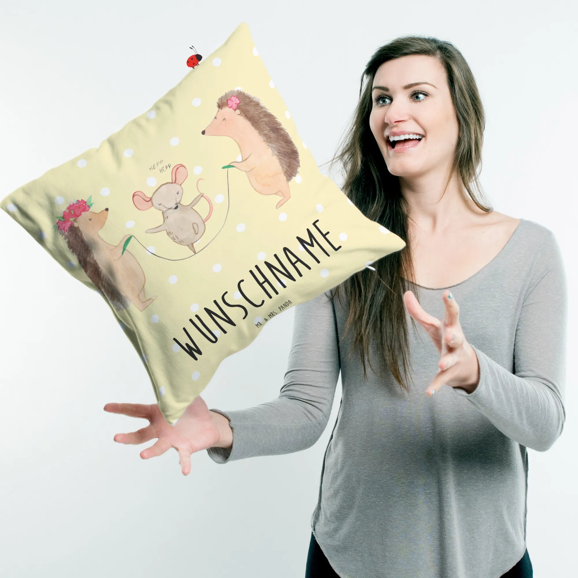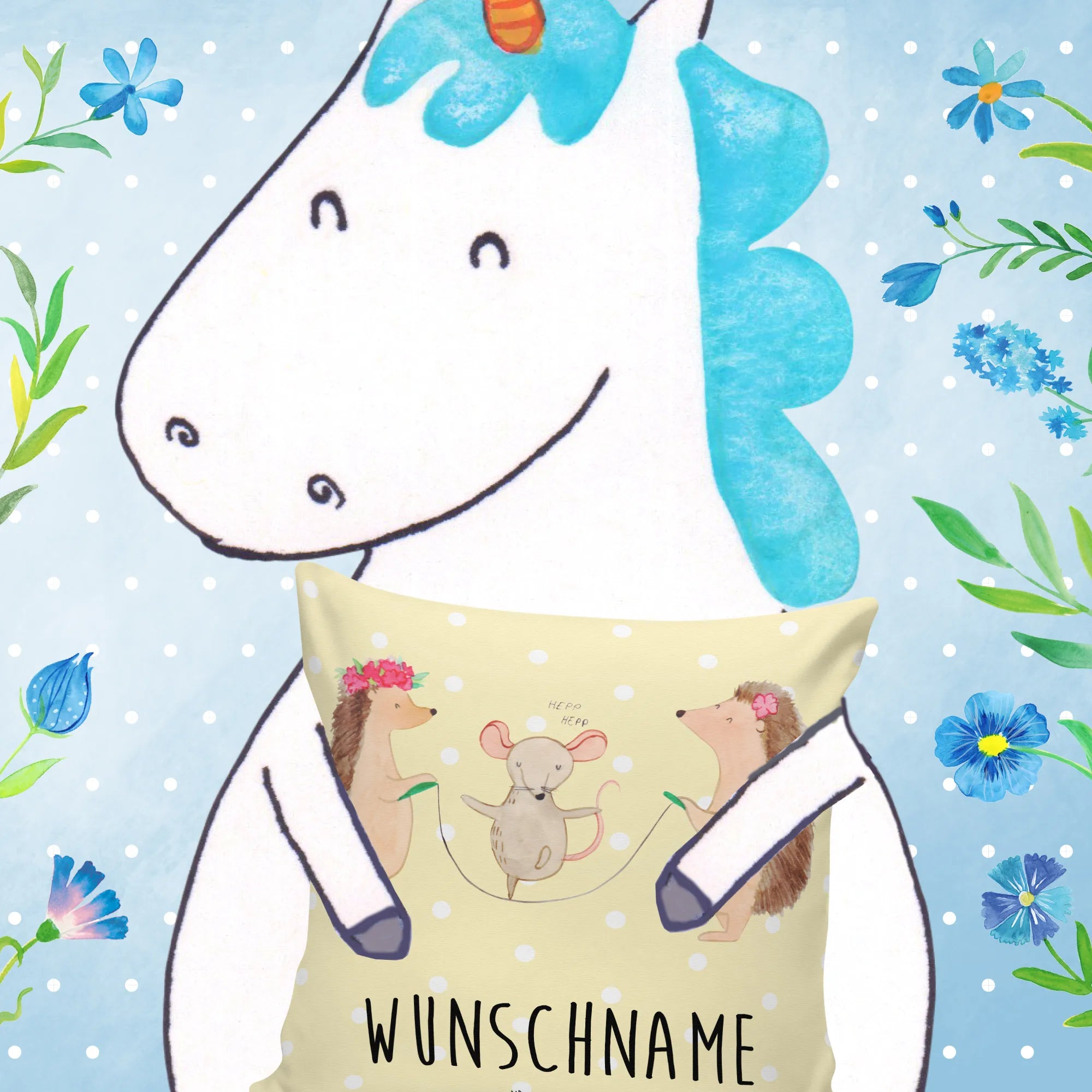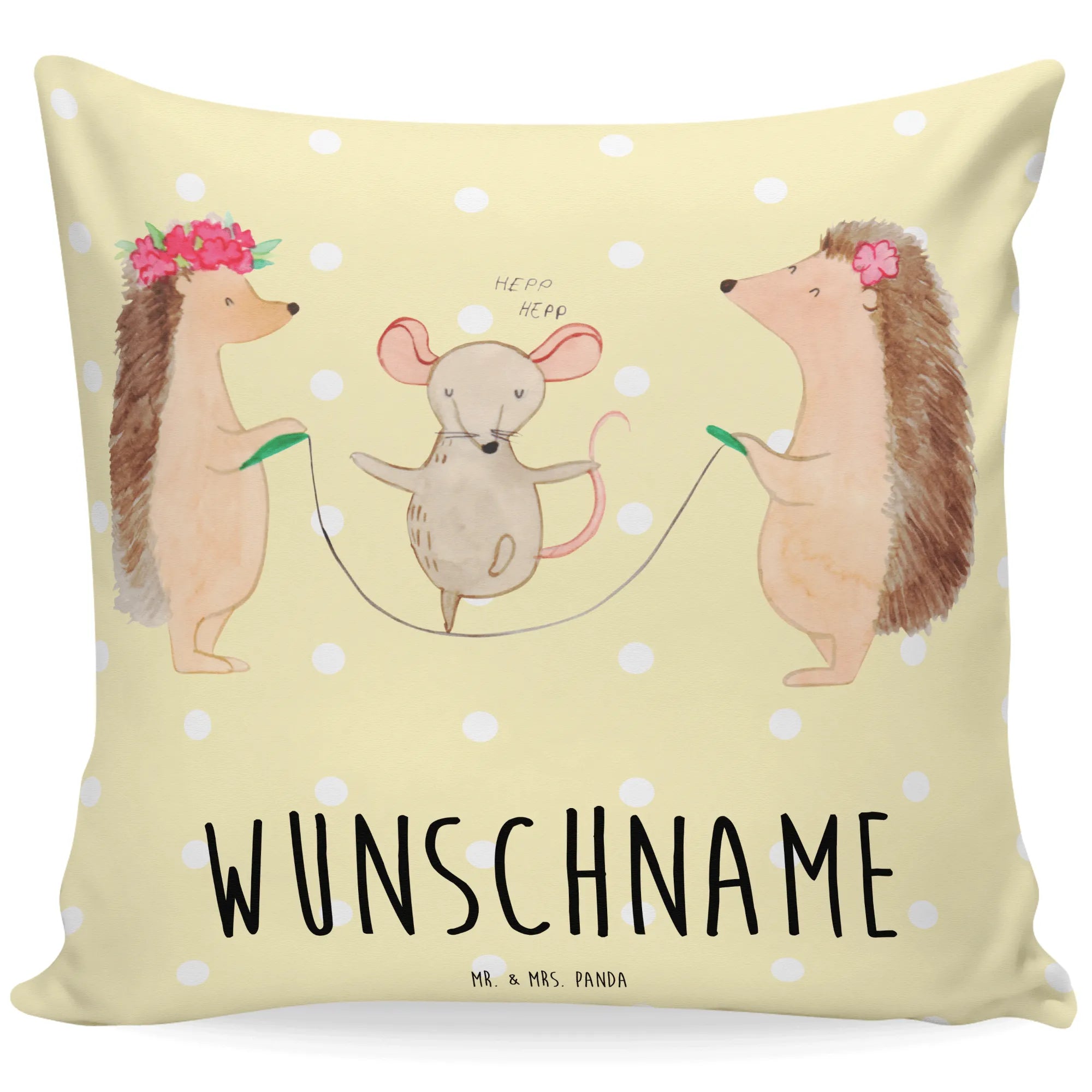 Personalised cushion Hedgehog skipping