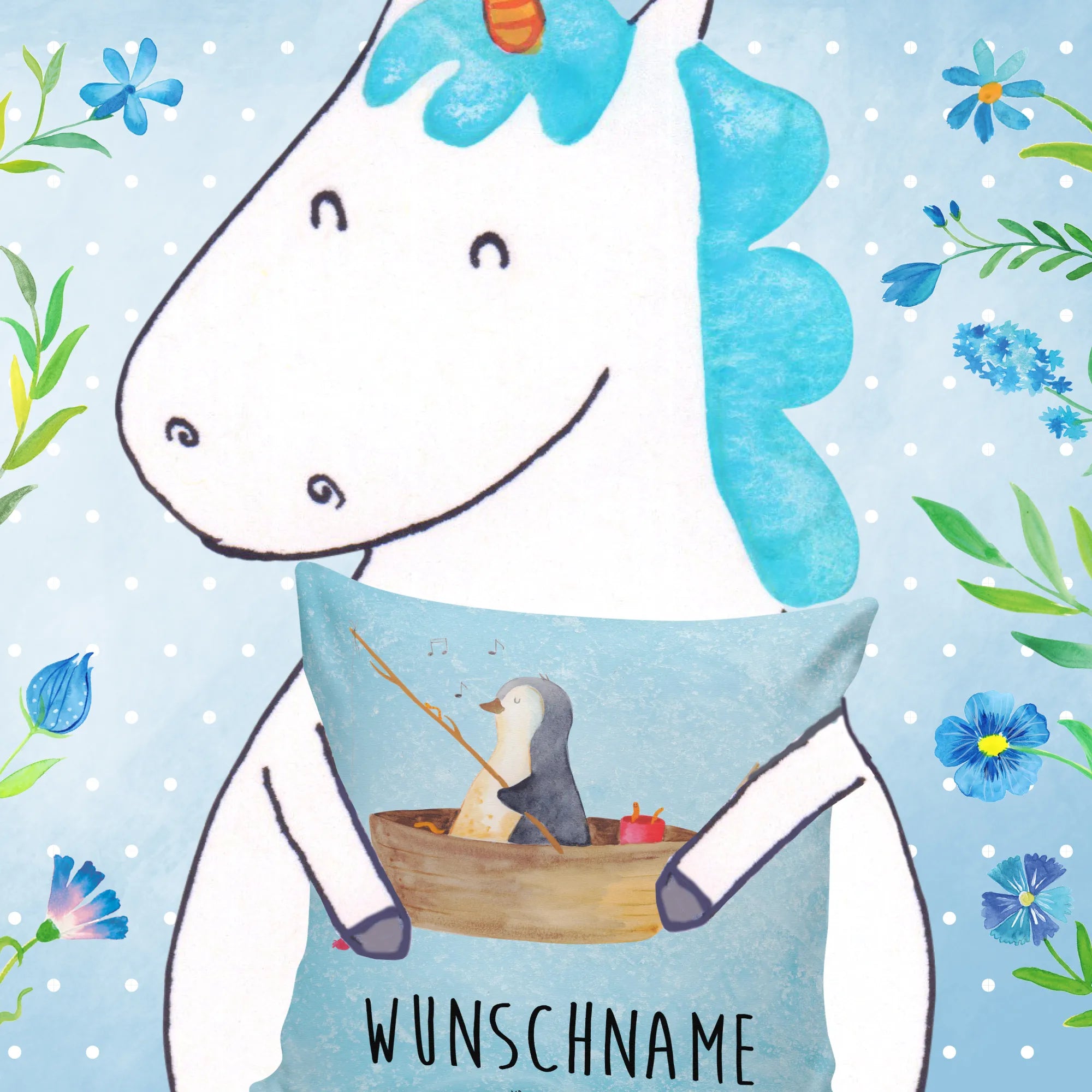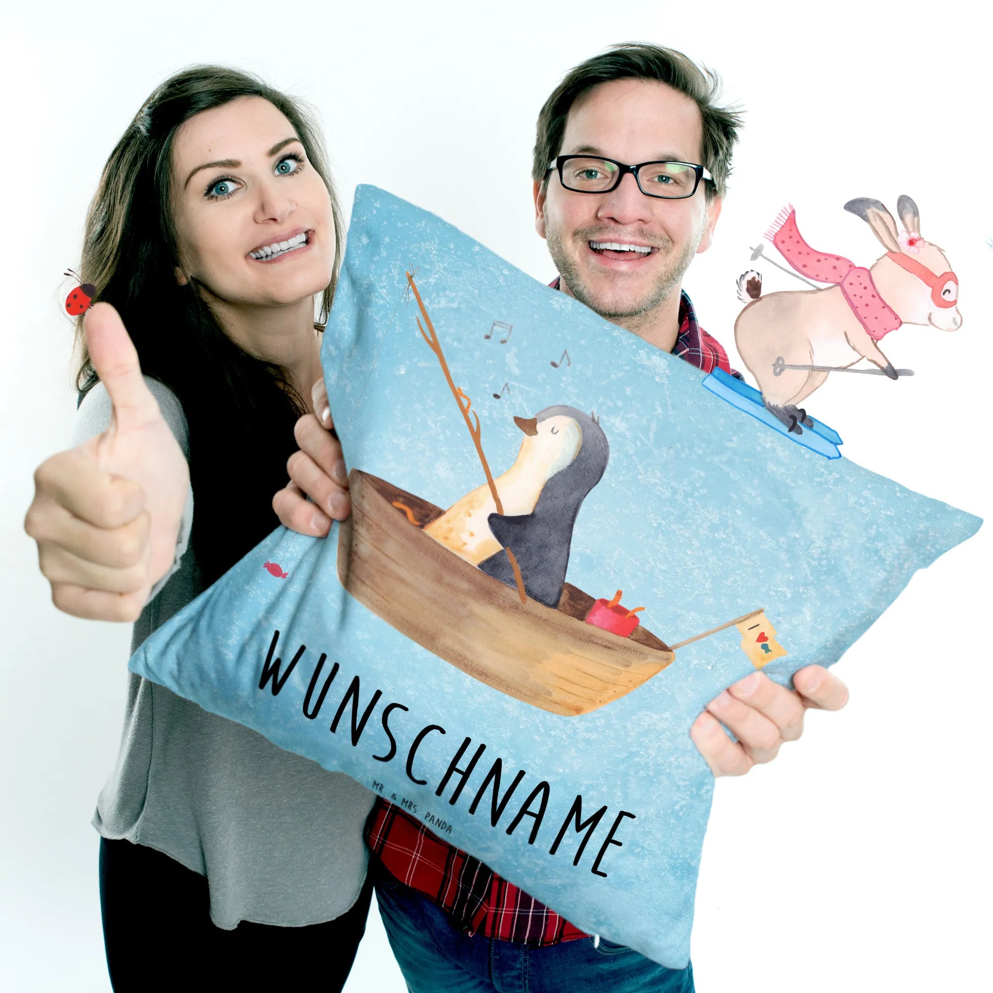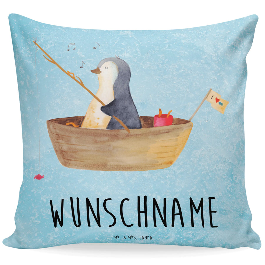 Personalised cushion Penguin fishing boat