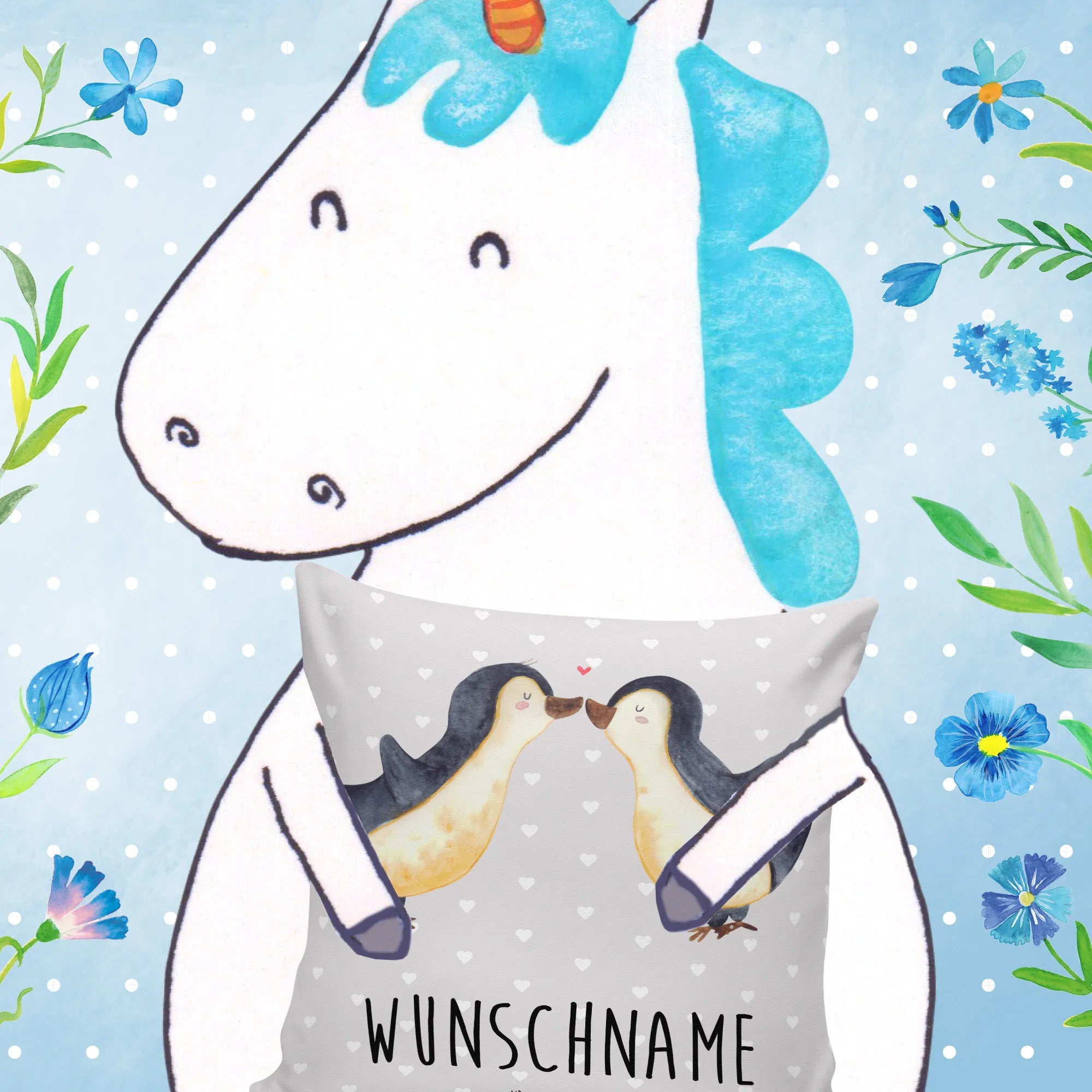 Personalised cushion Penguins in love