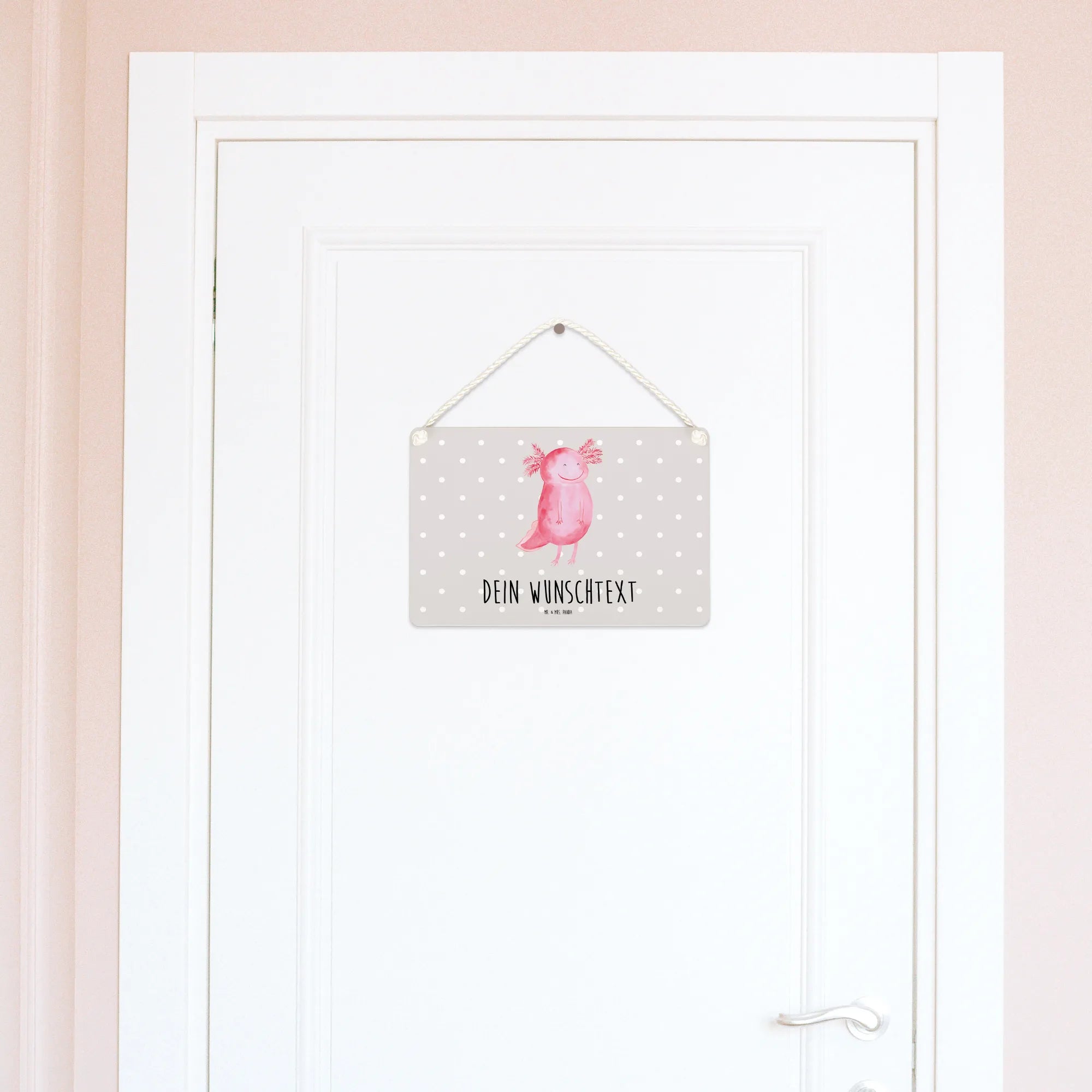 Personalised decorative sign axolotl Happy - DIN A6 - Grey Pastel