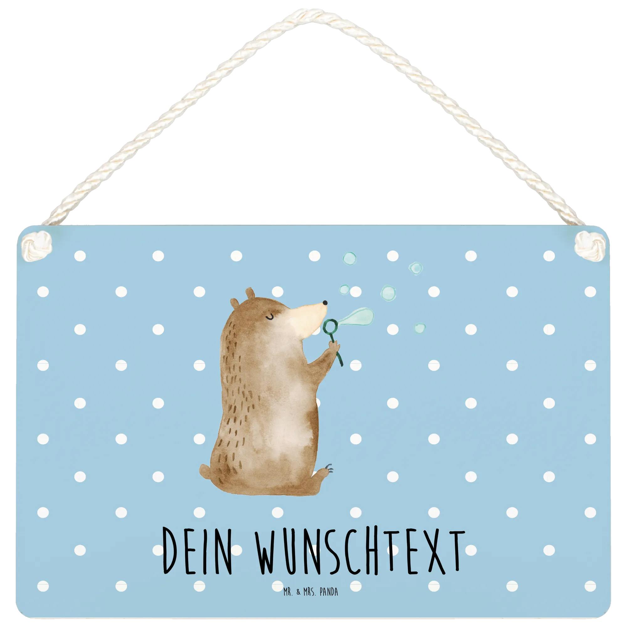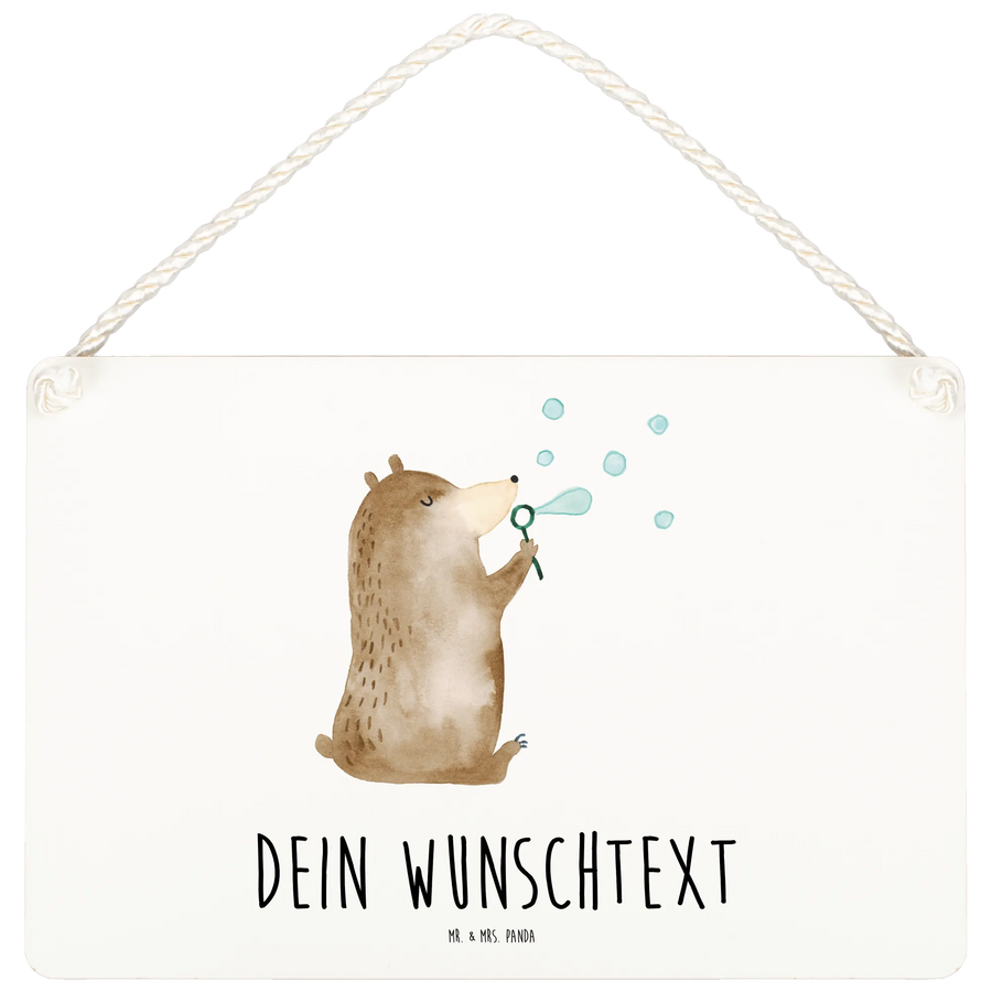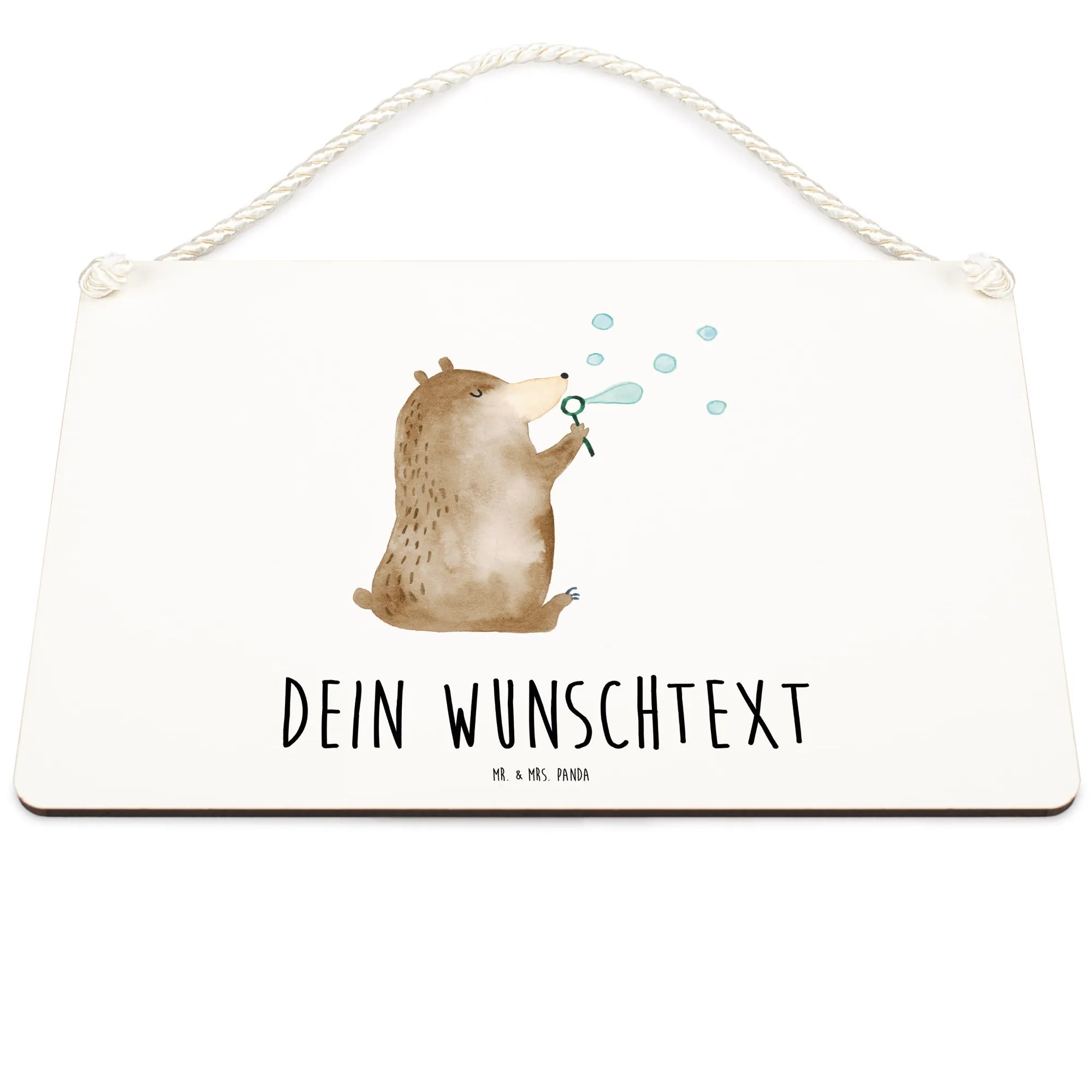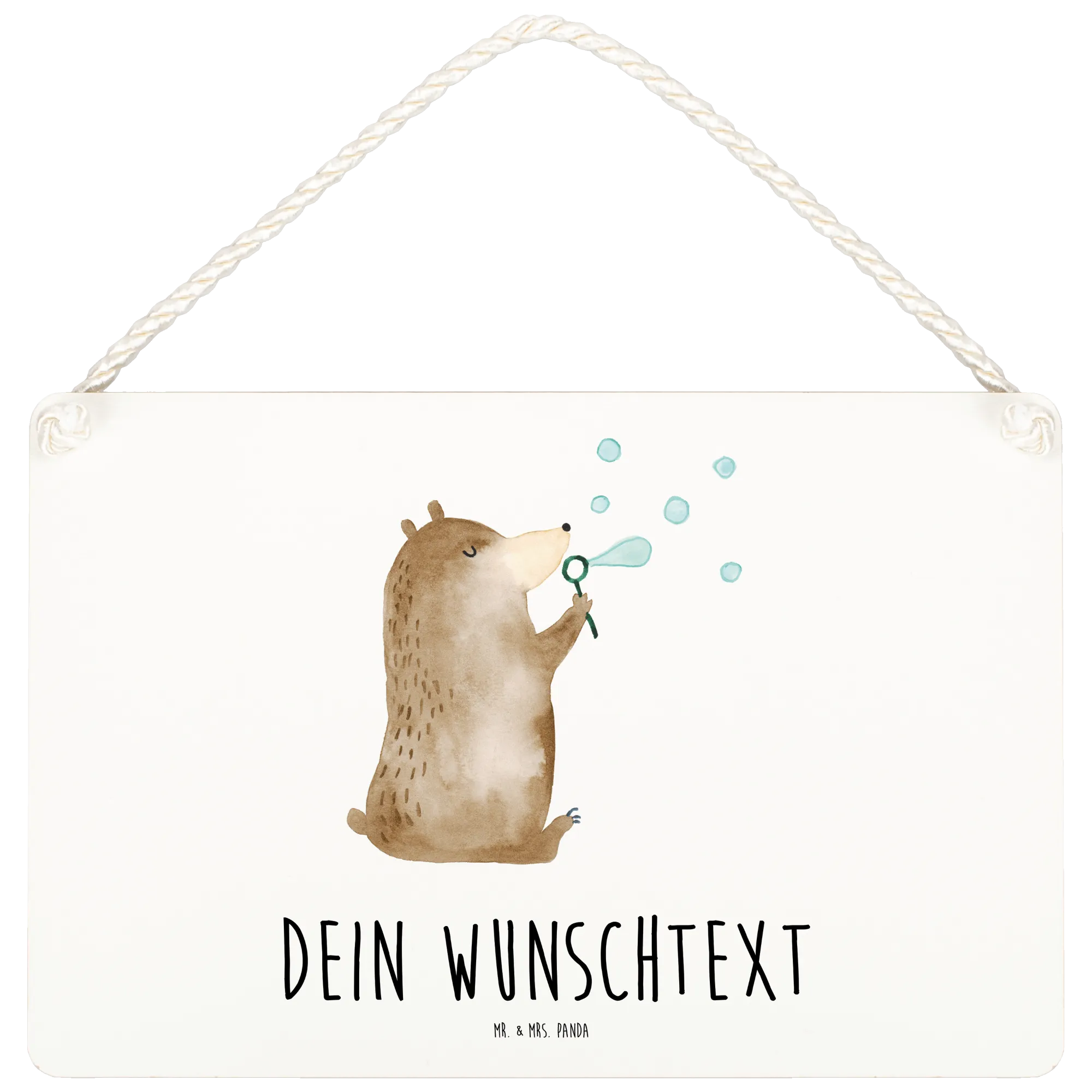 Personalised decorative sign bear soap bubbles - DIN A6 - White