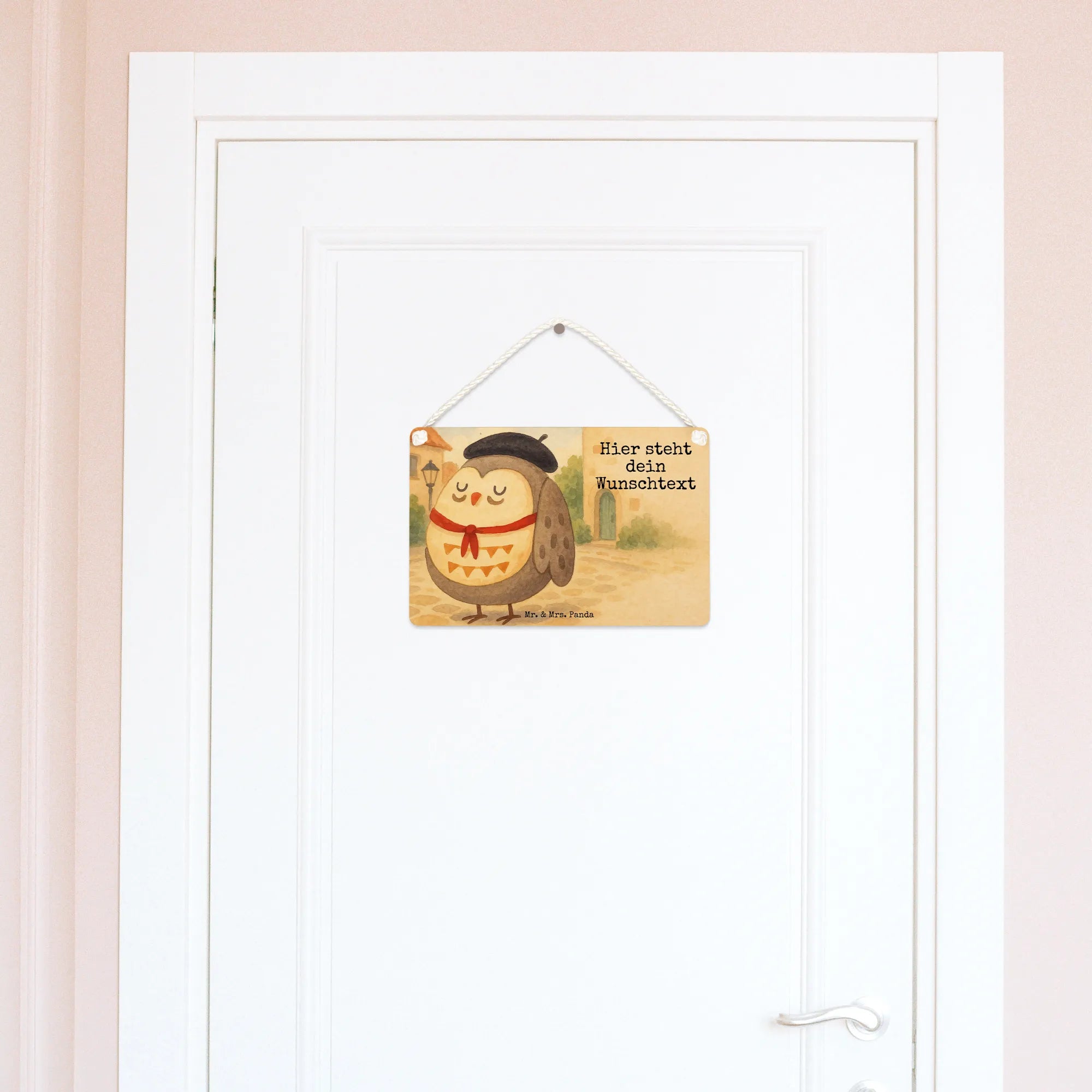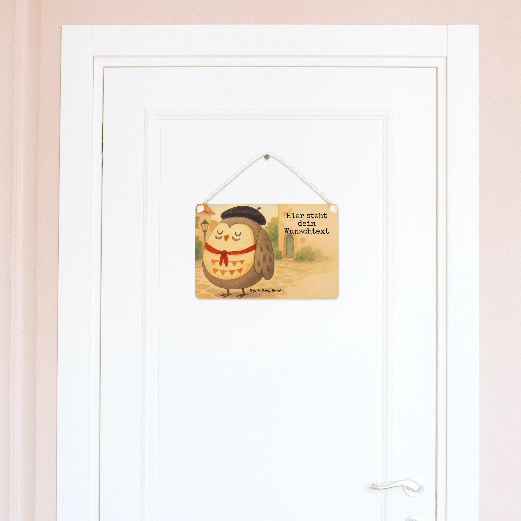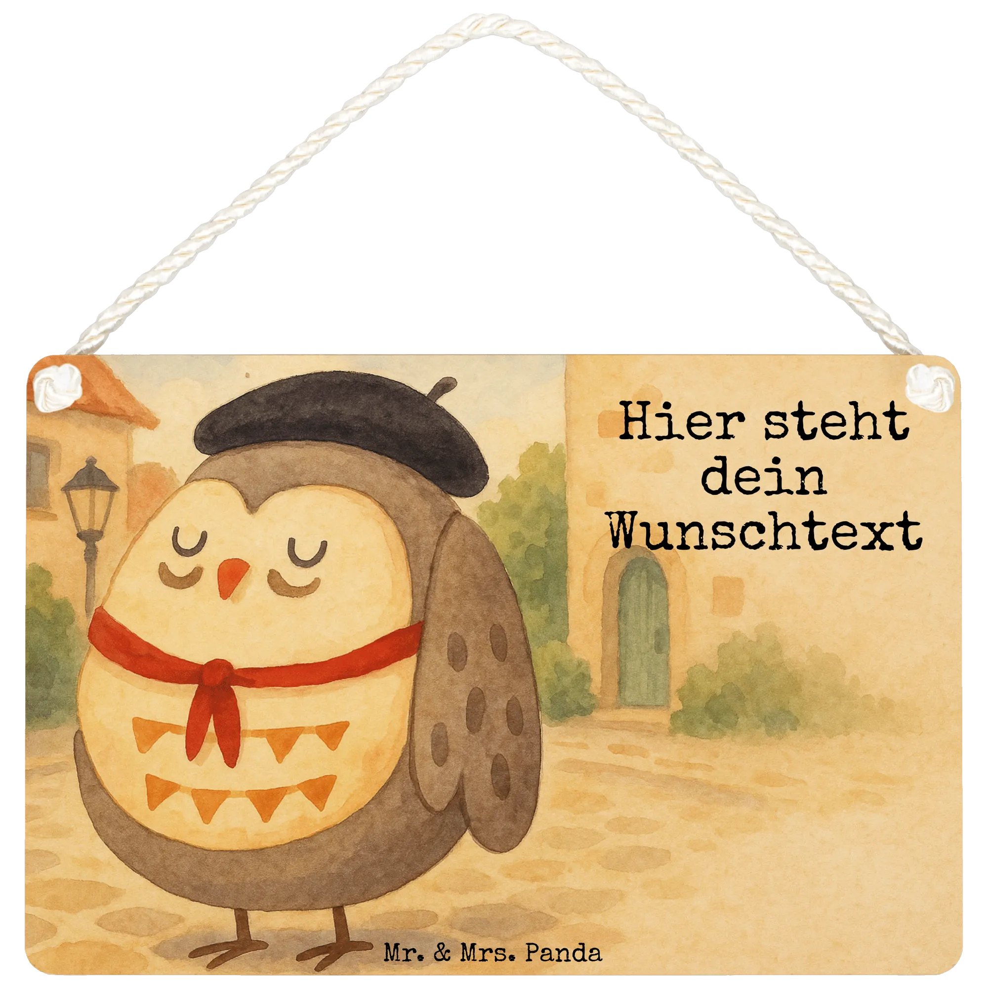 Personalisiertes Deko Schild Eule Frankreich Design - DIN A5