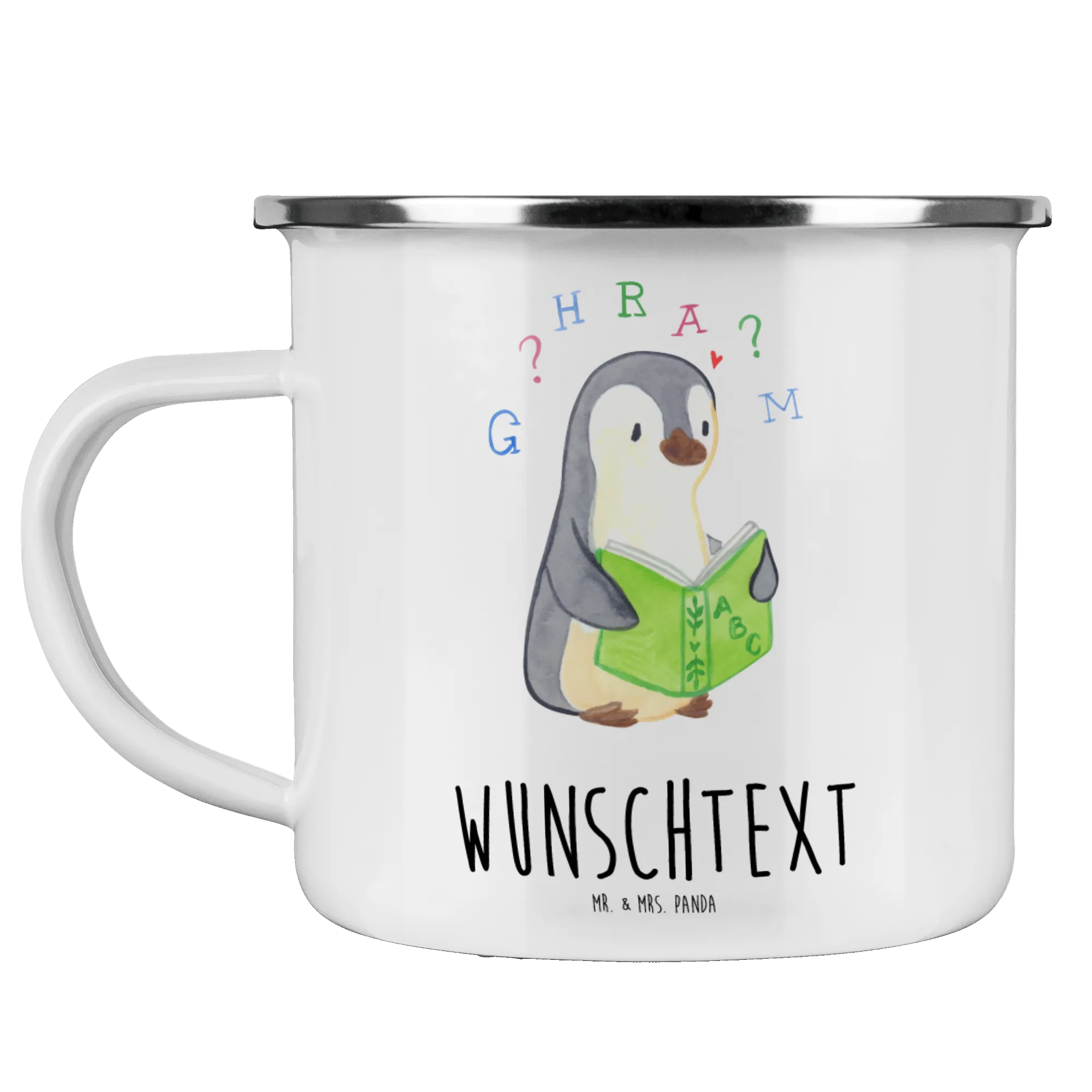 Personalised enamel cup Penguin Dyslexia