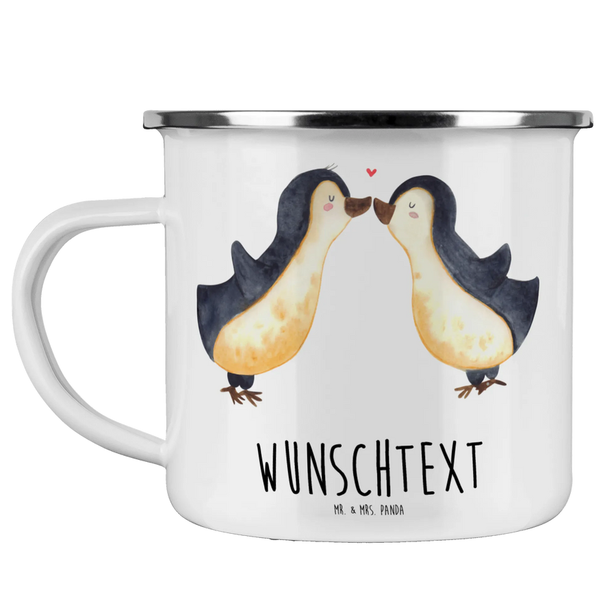 Personalised enamel cup Penguins in love