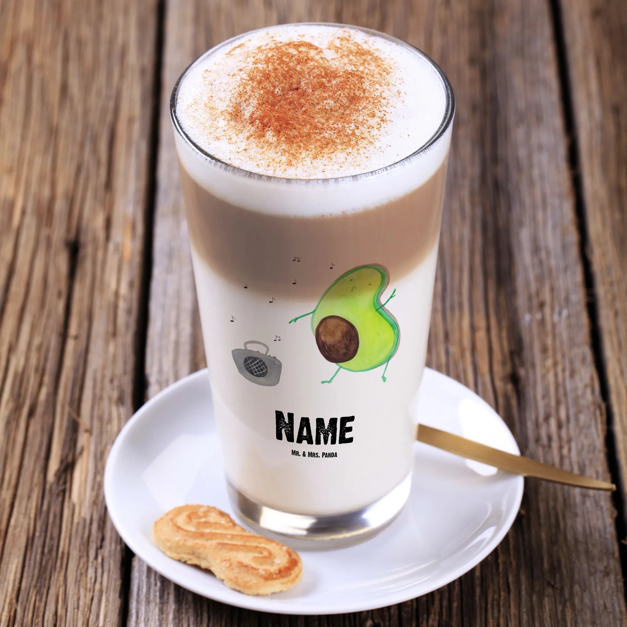 Ein Glas zum Lächeln: Unser personalisiertes Glas „Avocado tanzt“ aus der Avocado-Kollektion von Mr. & Mrs. Panda vereint Charme, Persönlichkeit und Alltagstauglichkeit. Die fröhliche Avocado, die vor einem Ghettoblaster tanzt, bringt Schwung in jeden Schluck und zaubert ein Lächeln auf dein Gesicht. 🍹