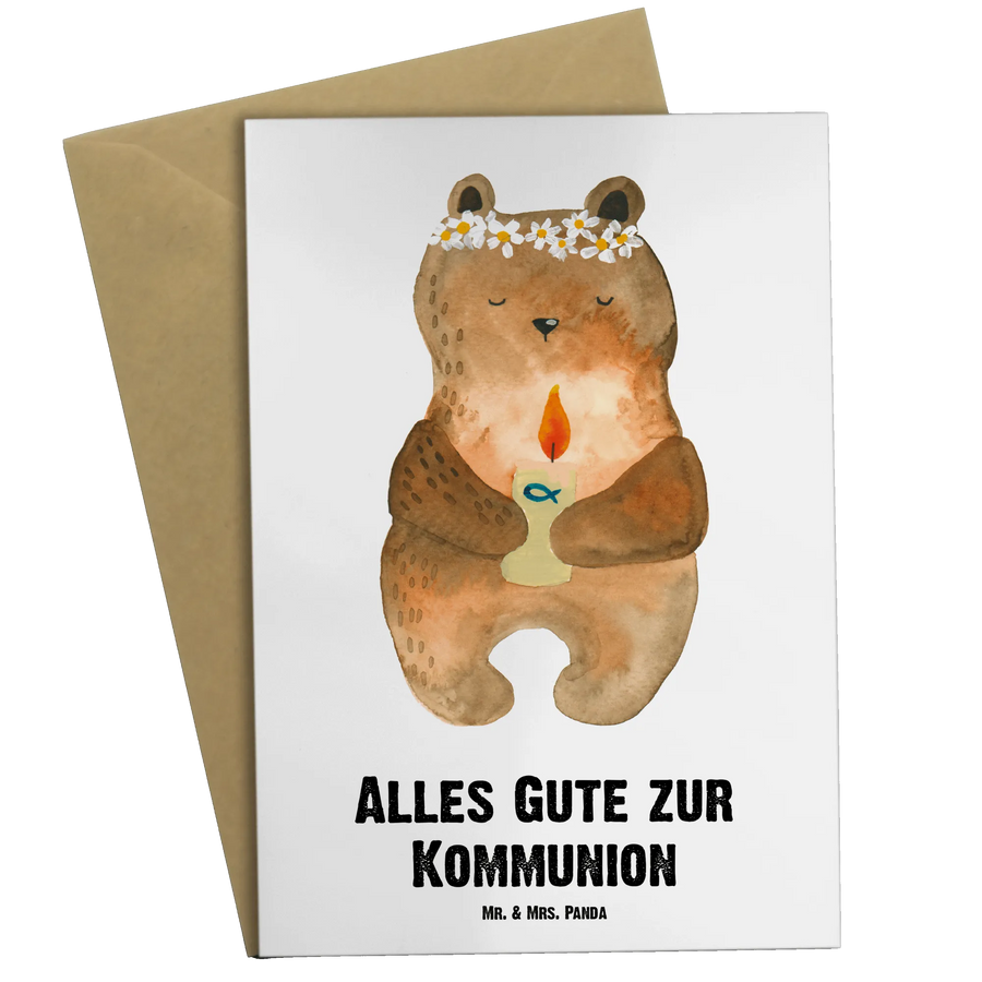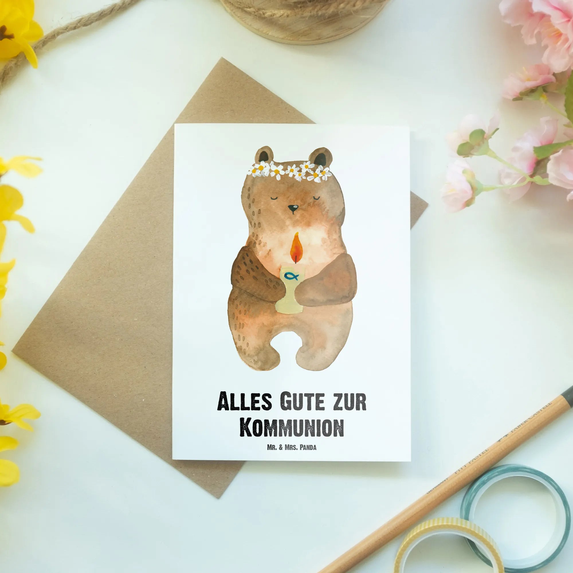 Charming Communion Bear with Candle and Flowers - A Special Gift