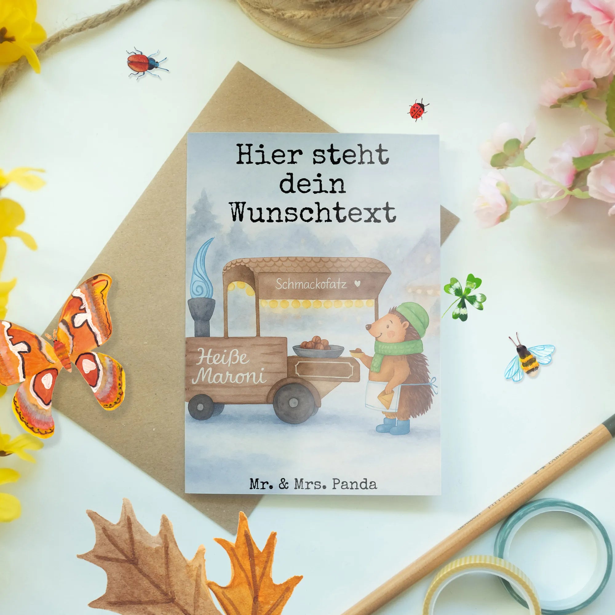 At the enchanting Weihnachtsmarkt, where every corner is filled with joy and laughter, our adorable hedgehog takes pride in his hot Maronen stall. The scent wafting through the air is intoxicating, warming hearts despite the winter chill. "Ich wünsche dir auch im tiefsten Winter den Glauben an dich selbst, Sonnenschein im Herzen, eine unbändige Zuversicht, die dich nie die Hoffnung aufgeben lässt und heiße Maronen, die dich den ganzen Winter über wärmen." These beautiful words serve as a reminder that no matter how cold it gets outside, your inner light and self-belief can always shine bright. Just like the comforting warmth of freshly roasted chestnuts in your hands, let hope and positivity infuse your spirit this winter. Together, we can face the chilly days ahead with a heart full of warmth and optimism, finding joy and comfort in every moment, just like our little hedgehog spreads happiness with every chestnut he serves.