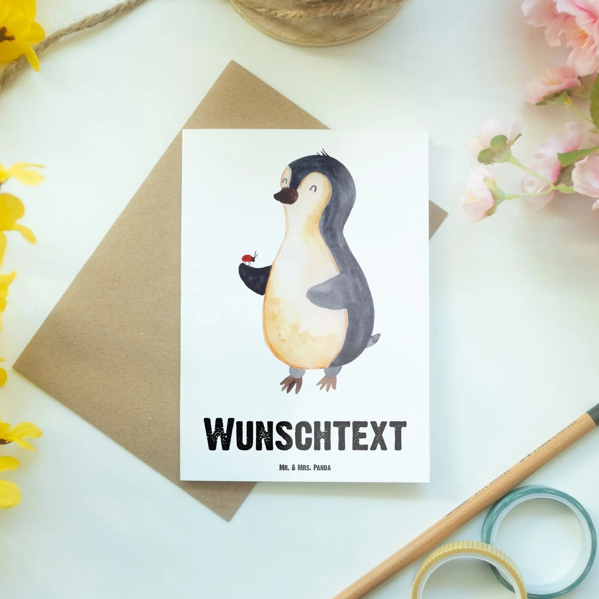 Personalised greetings card Penguin ladybug