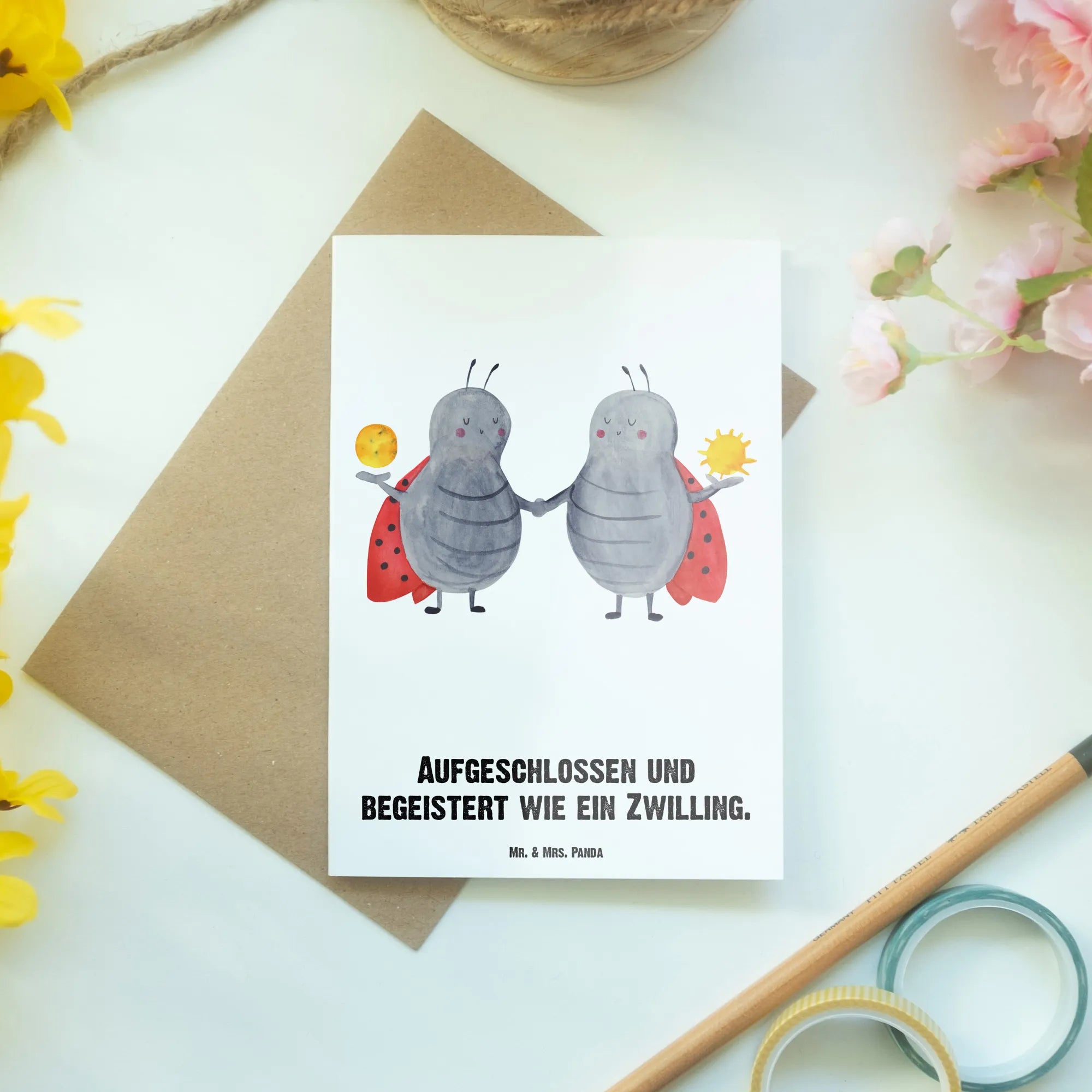 Personalised greetings card Star sign twin – Mr. & Mrs. Panda