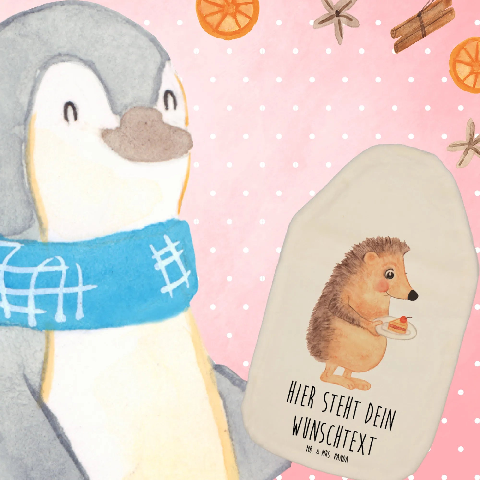 Make warmth personal! Personalise your hot water bottle with Mr. & Mrs. Panda and embrace the joy of cuddly comfort.