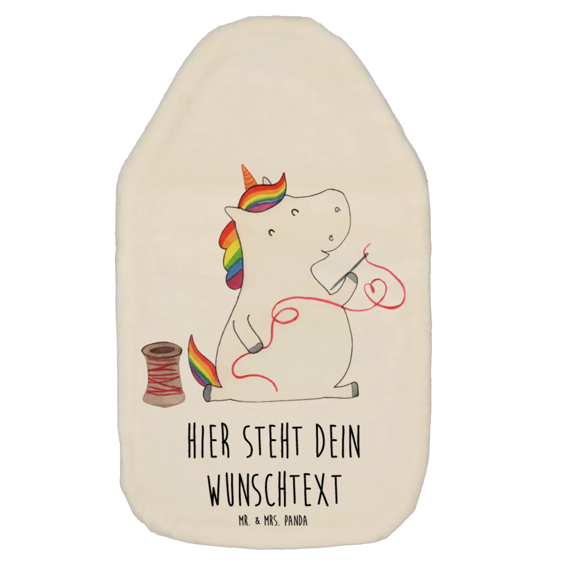 Personalised hot water bottle unicorn seamstress