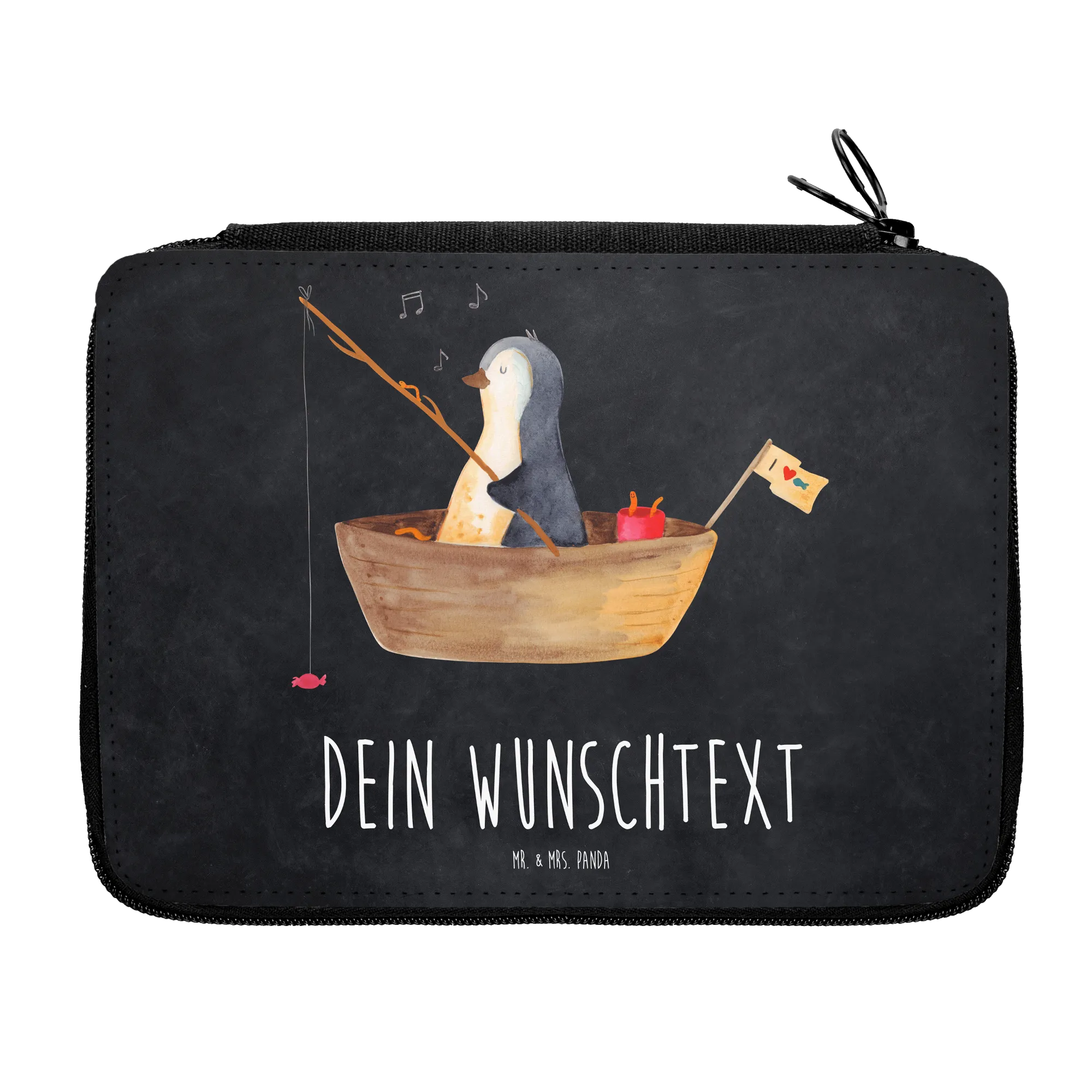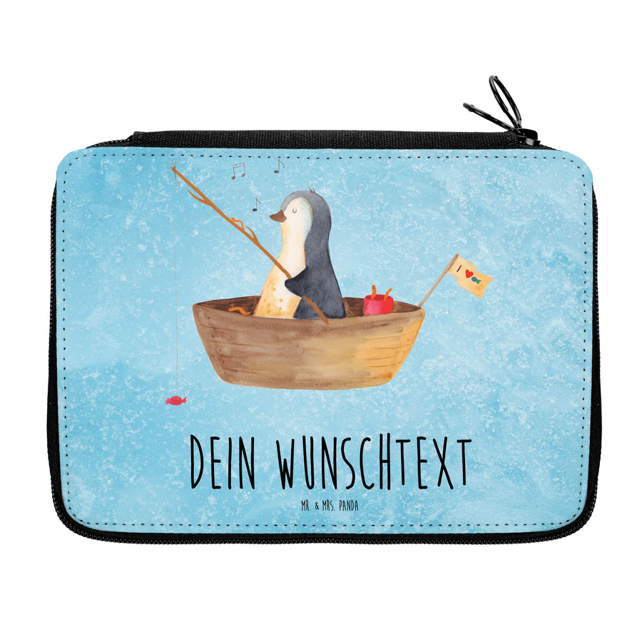 Personalised leather folder Penguin fishing boat - Ice blue