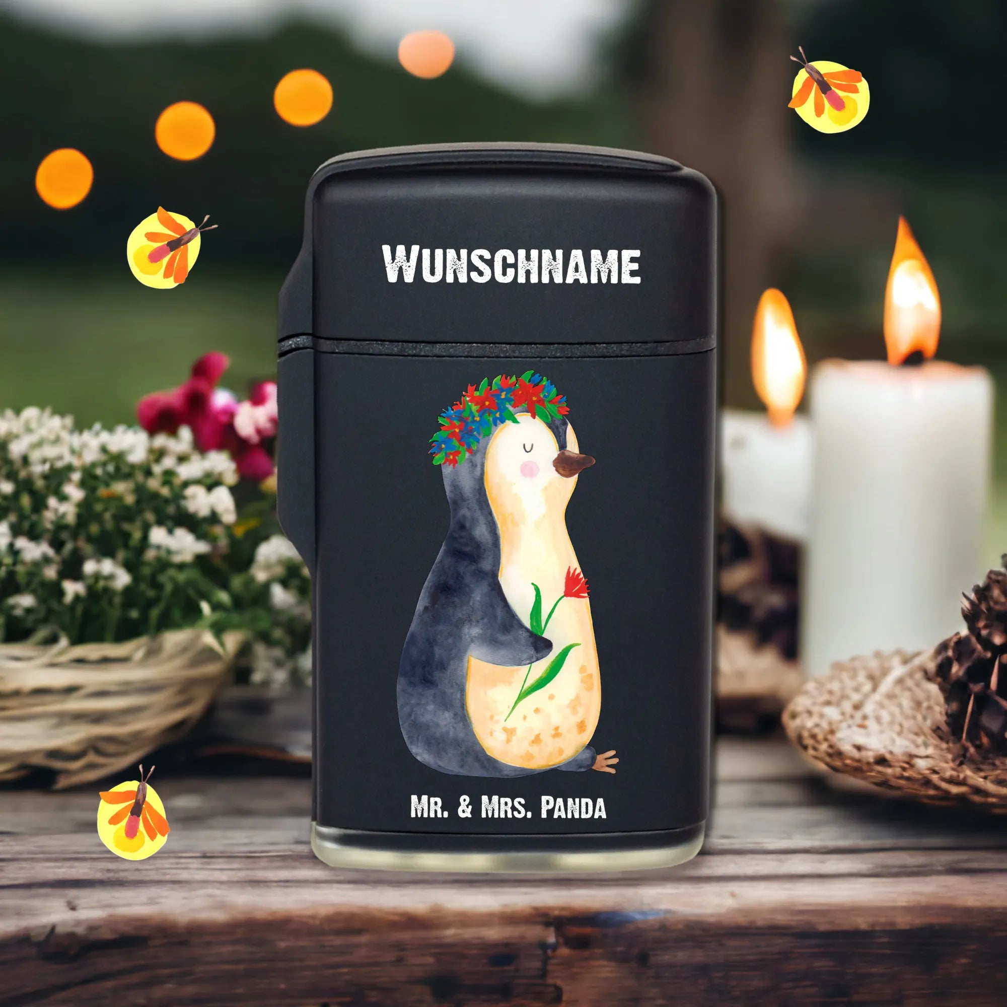 Personalised lighter Penguin Flower
