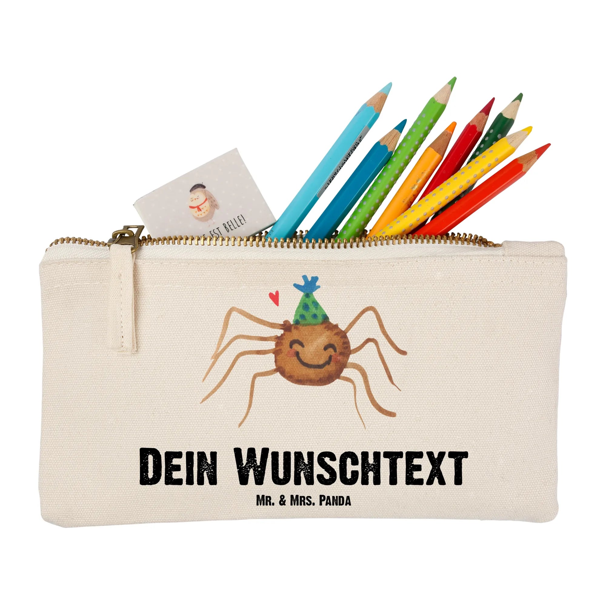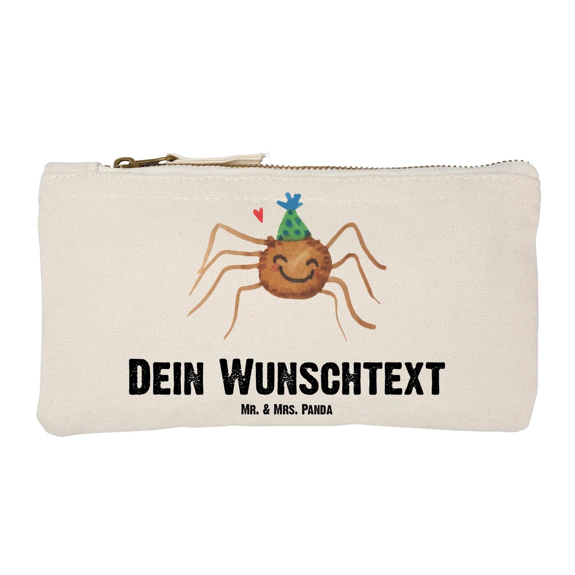 Die personalisierte Schminktasche Spinne Agathe Party von Mr. & Mrs. Panda ist der perfekte Begleiter für alle, die ihre Kosmetikartikel stilvoll und praktisch verstauen möchten.