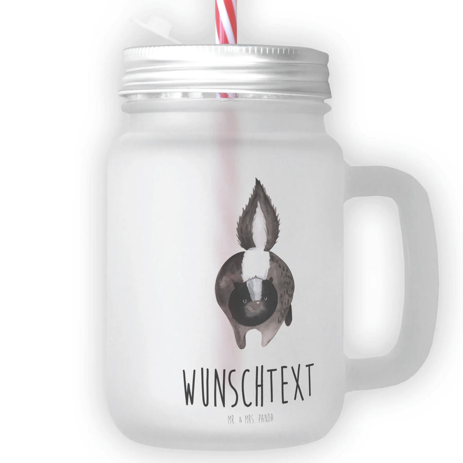 Personalised mason jar drinking glass skunk attack
