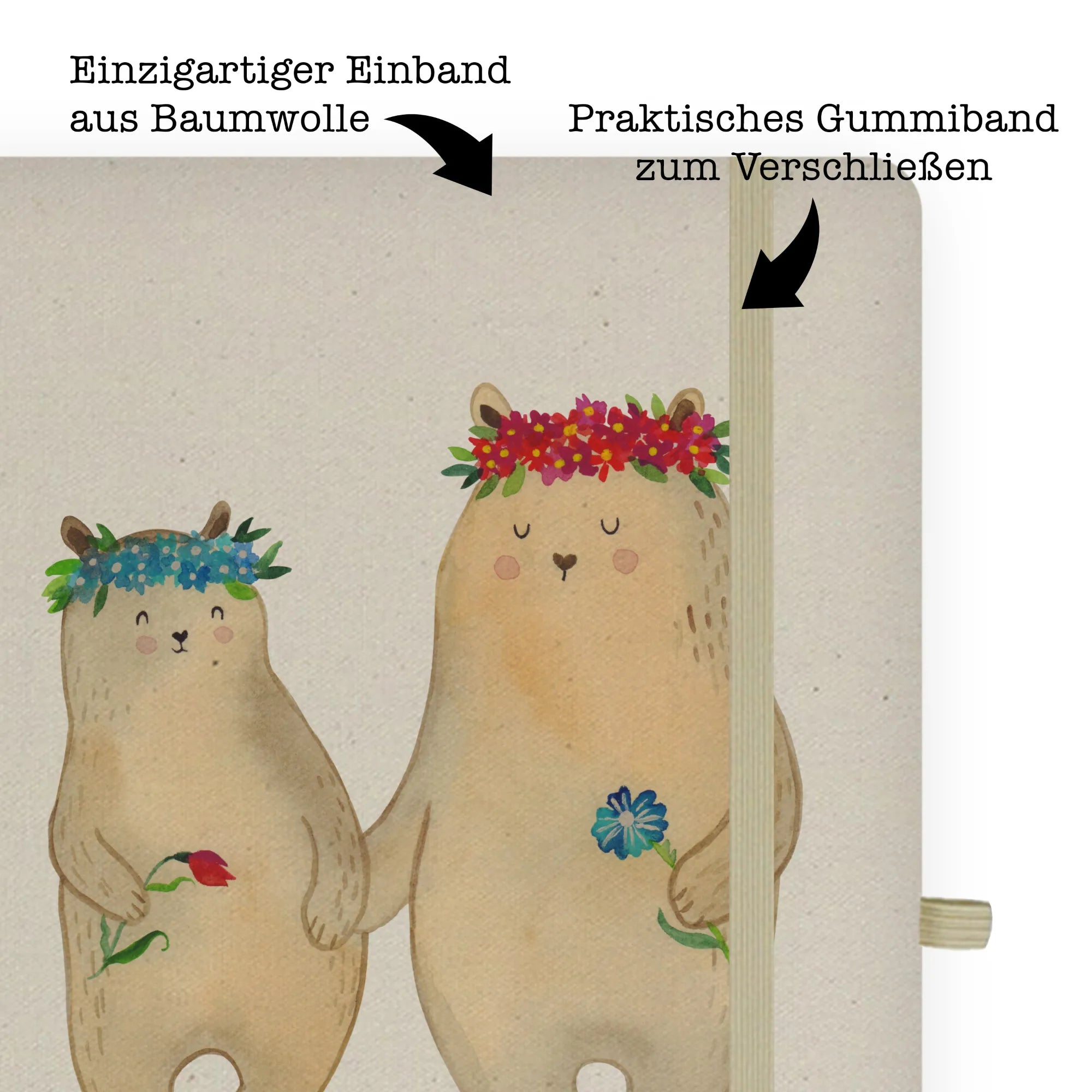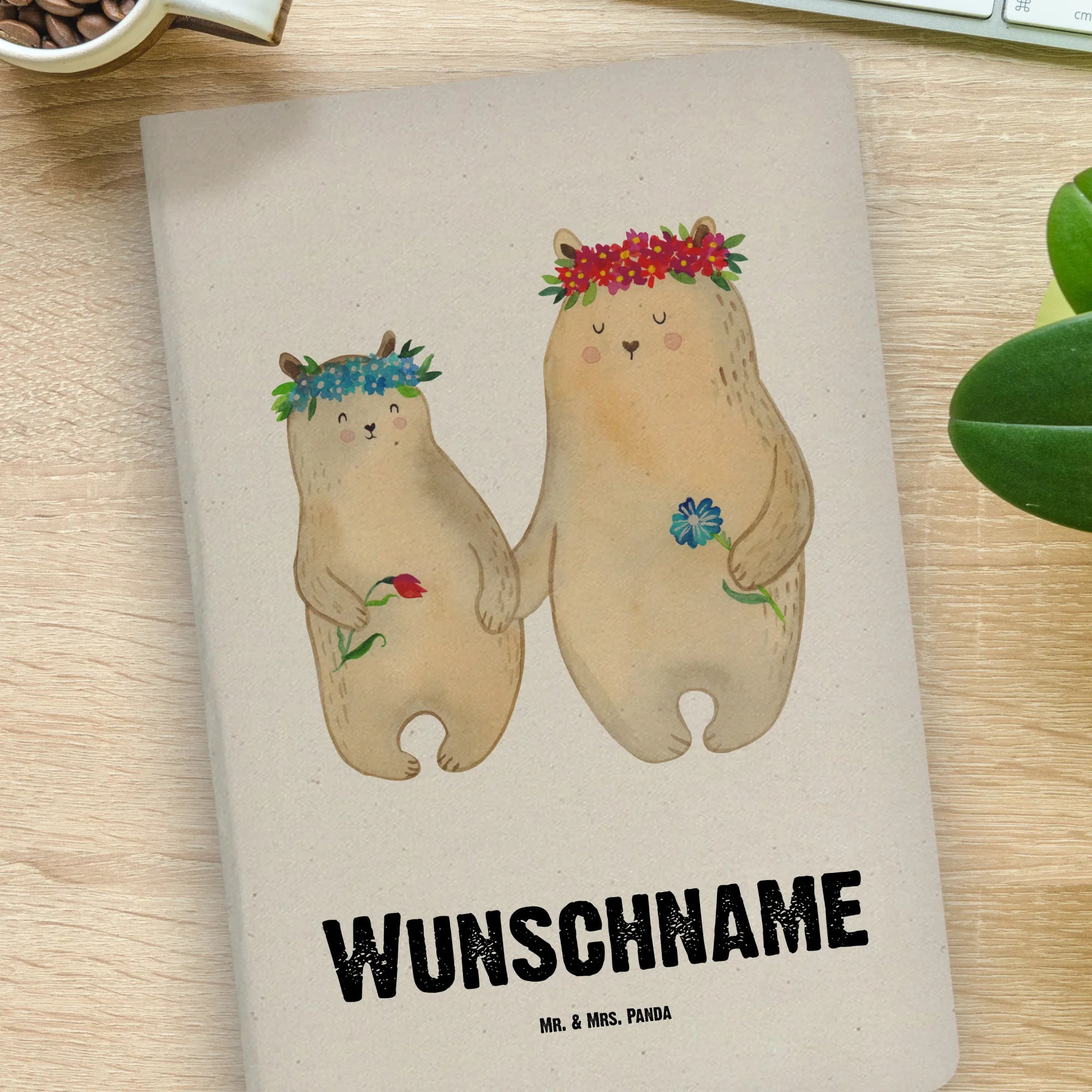 Personalised notebook Bears with flower crown – Mr. & Mrs. Panda