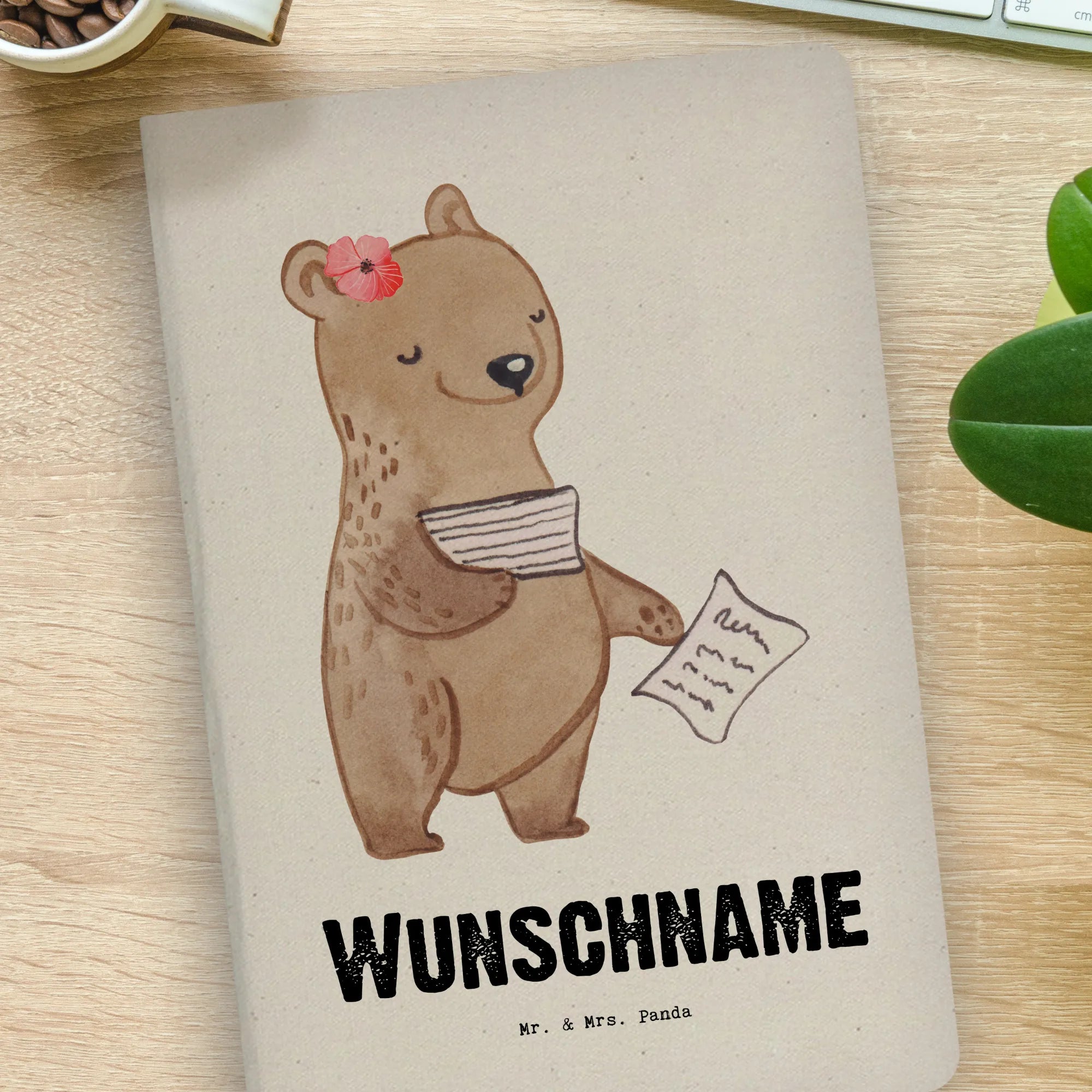 Elevate your writing experience with Mr. & Mrs. Panda's personalized notebook! This beautifully crafted notebook, 297 mm x 210 mm x 15 mm in size, combines functionality with charm. Adorned with sweet illustrations and quotes, it's perfect for capturing spontaneous ideas or thoughtful reflections. Make it uniquely yours by personalizing it with a name or a special message. Each of the 96 pages features unbleached, lined paper that feels fantastic to write upon. The hardcover is wrapped in high-quality cotton for durability, and it includes a convenient ribbon bookmark, elastic band, and pen loop for ease of use. Perfect for gifting to friends or rewarding yourself, this notebook is a must-have for anyone who cherishes creativity. Just a heads up—personalized notebooks cannot be returned, so make sure your customization is just right!