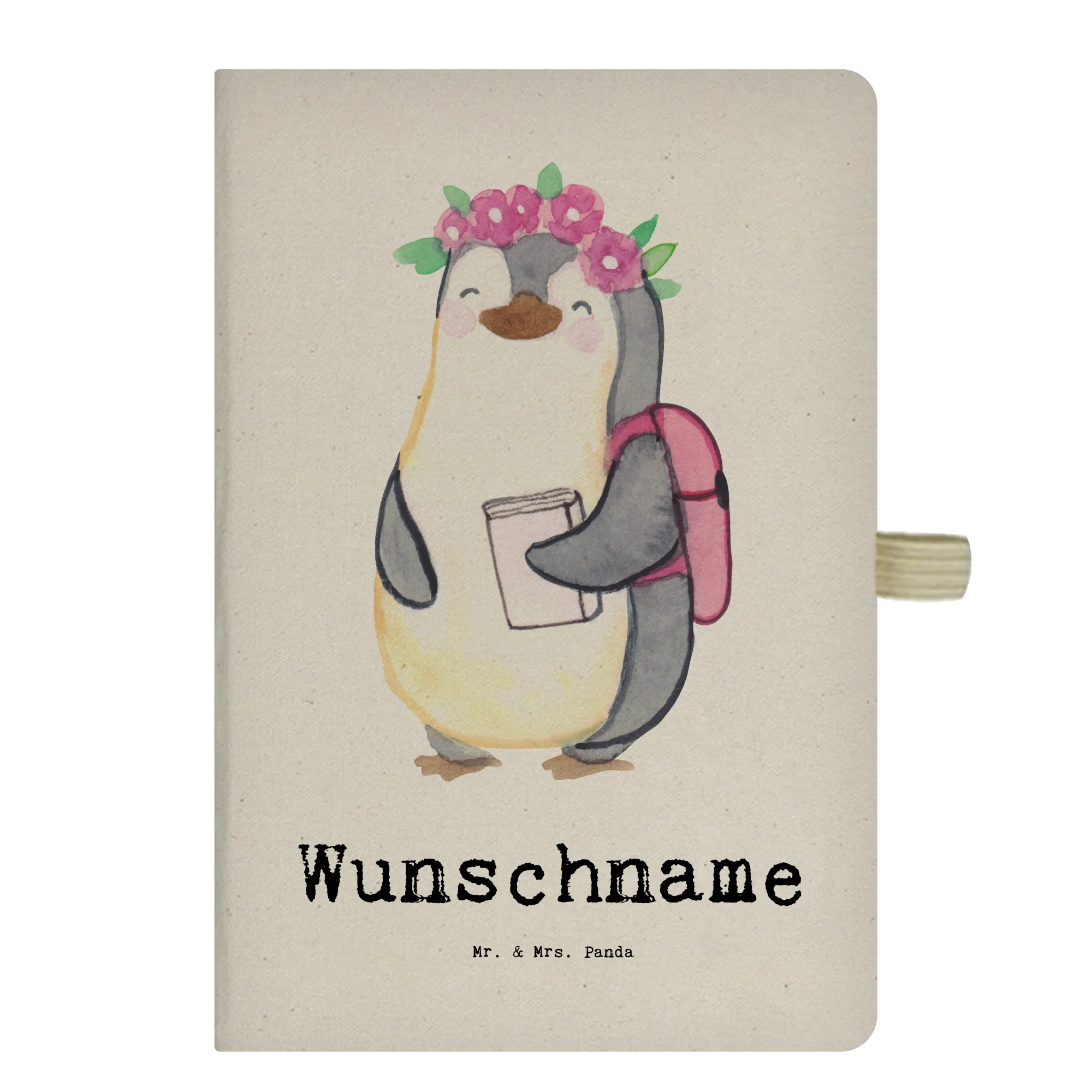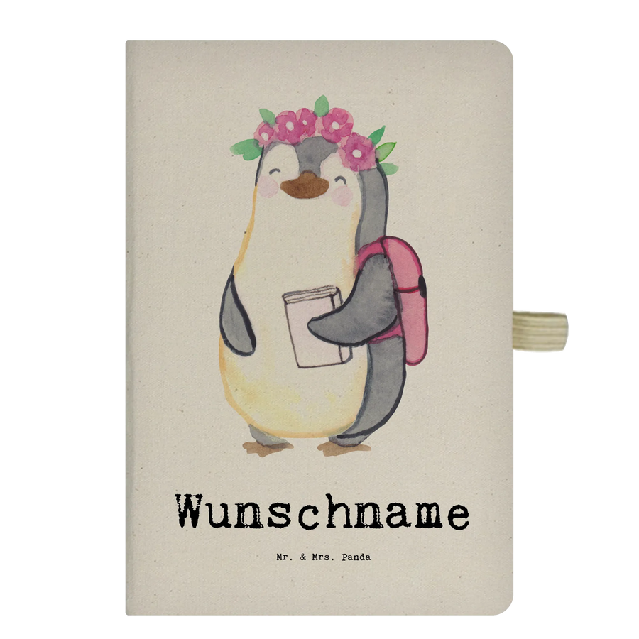 Elevate your writing experience with Mr. & Mrs. Panda's personalized notebook! This beautifully crafted notebook, 297 mm x 210 mm x 15 mm in size, combines functionality with charm. Adorned with sweet illustrations and quotes, it's perfect for capturing spontaneous ideas or thoughtful reflections. Make it uniquely yours by personalizing it with a name or a special message. Each of the 96 pages features unbleached, lined paper that feels fantastic to write upon. The hardcover is wrapped in high-quality cotton for durability, and it includes a convenient ribbon bookmark, elastic band, and pen loop for ease of use. Perfect for gifting to friends or rewarding yourself, this notebook is a must-have for anyone who cherishes creativity. Just a heads up—personalized notebooks cannot be returned, so make sure your customization is just right!