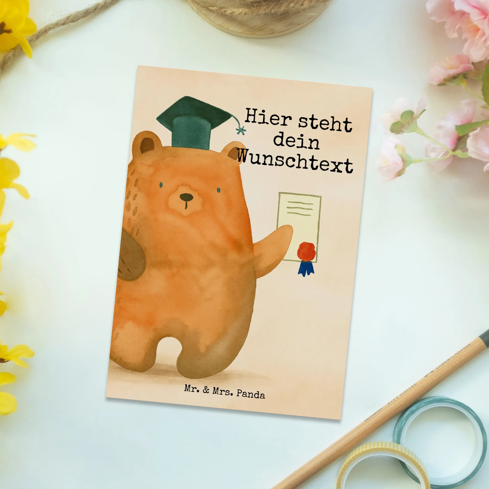 Personalised postcard bear Test Design bear, teddy, teddy bear, cuddly toy, degree, examination passed, diploma, Abitur, examinations, certificate