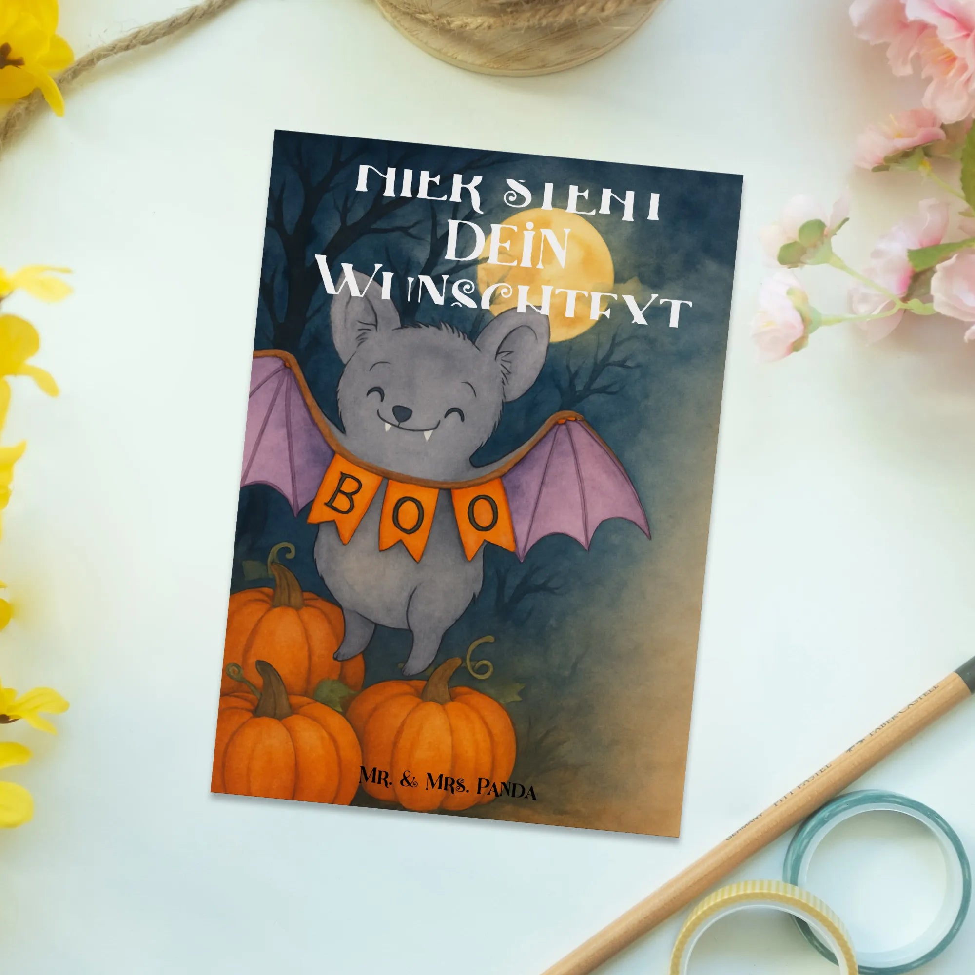 Personalisierte Postkarte Fledermaus Boo – die süßeste Halloween-Überraschung von Mr. & Mrs. Panda! 😊