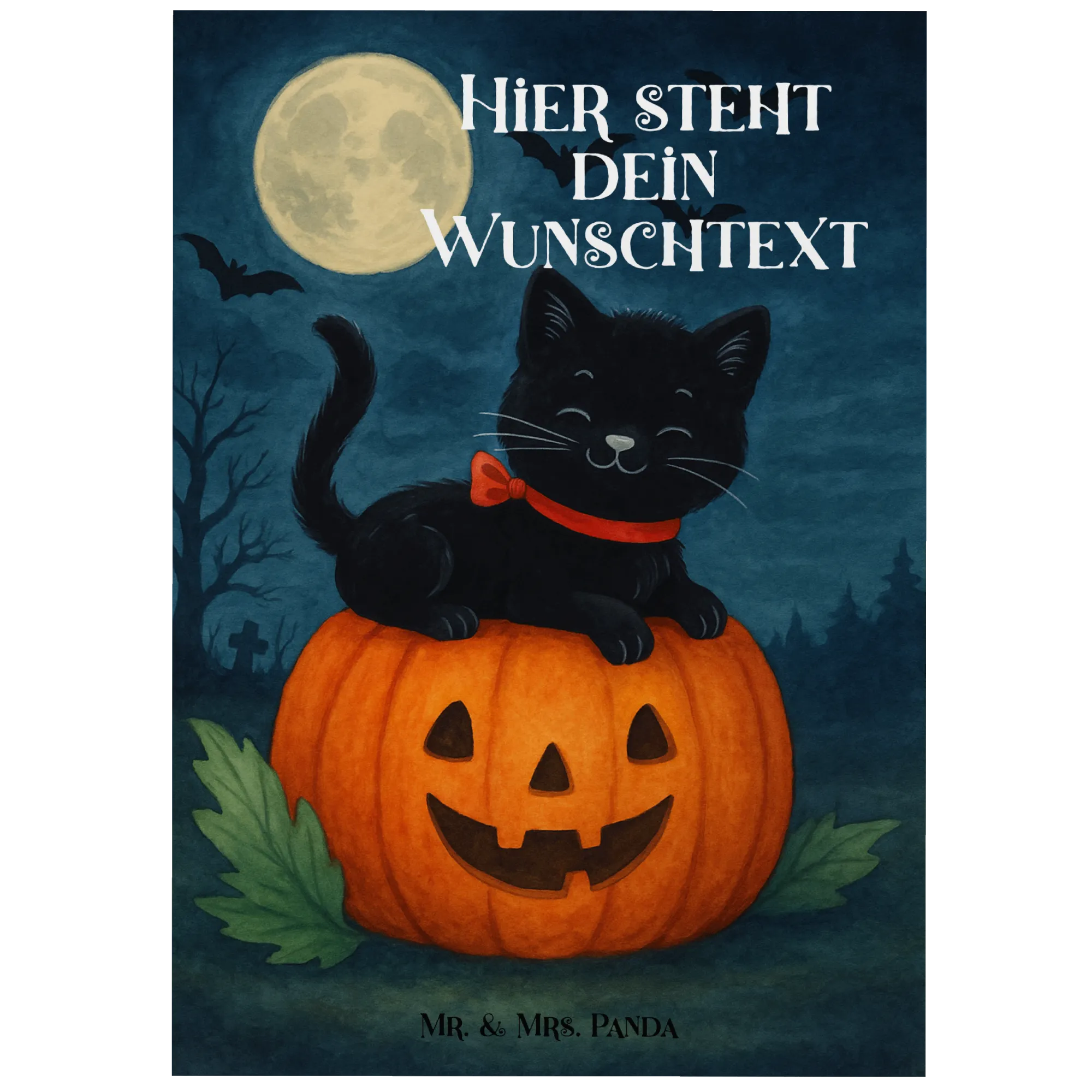 In diesem traumhaften Motiv finden wir eine entzückende schwarze Katze mit einer leuchtend roten Schleife, die sich gemütlich auf einem lächelnden Kürbis ausruht. Der Kürbis ist mit einem freundlichen Gesicht geschmückt und die grünen Blätter an seiner Seite verleihen dem Bild einen besonders lebendigen Touch. Dieses Bild versprüht eine unbeschwerte Halloween-Stimmung und entfaltet den Charme von freundlichen Gesichtern, die uns zum Lächeln bringen. Bei Mr. & Mrs. Panda glauben wir daran, dass Schönheit in den kleinen Details des Lebens liegt. Lass dich von der Wärme und Lebensfreude dieser Szenerie anstecken und genieße die kreative Kraft der Halloween-Zeit. Egal was kommt, umgib dich mit Freude und erinnere dich daran, dass das Leben voller zauberhafter Momente sein kann.