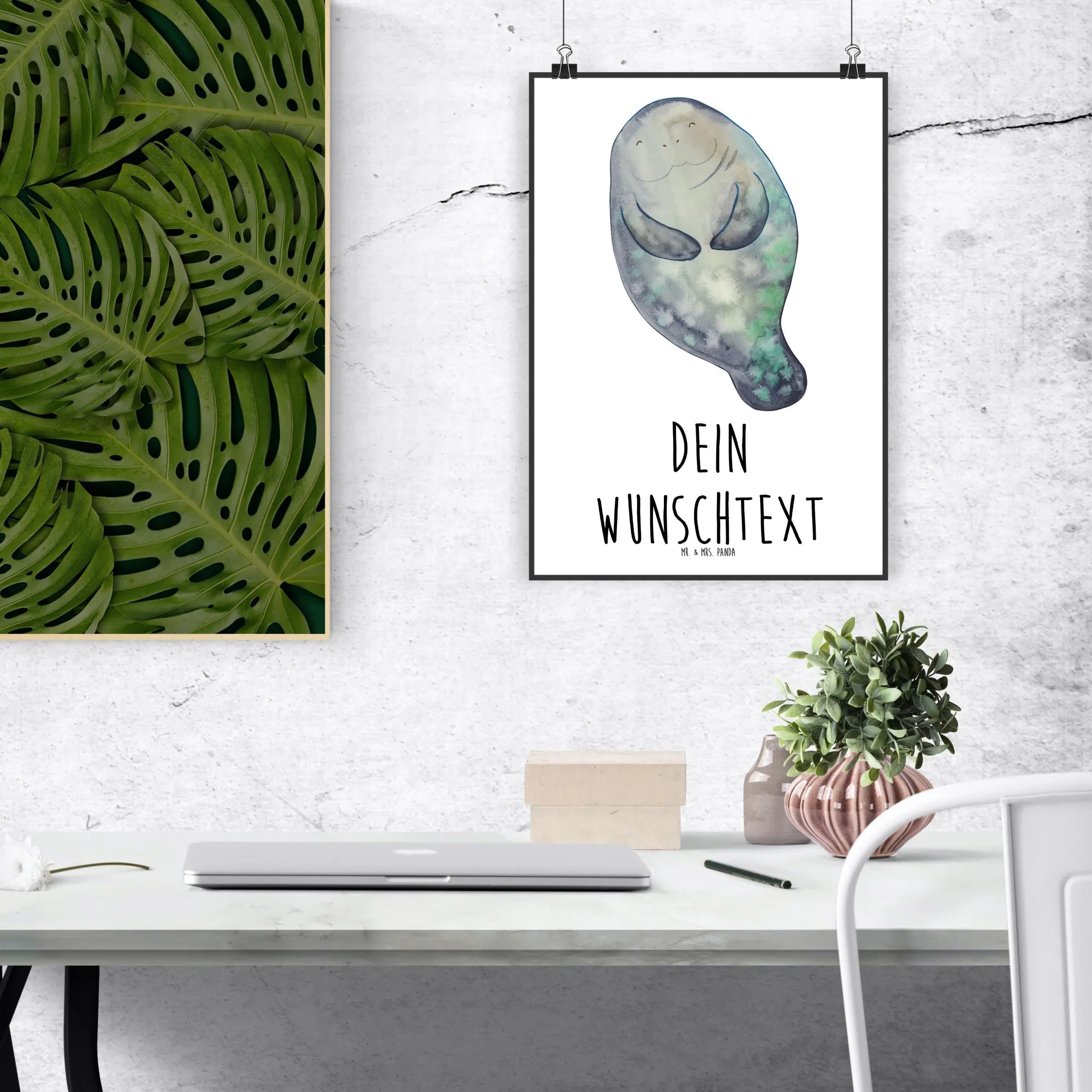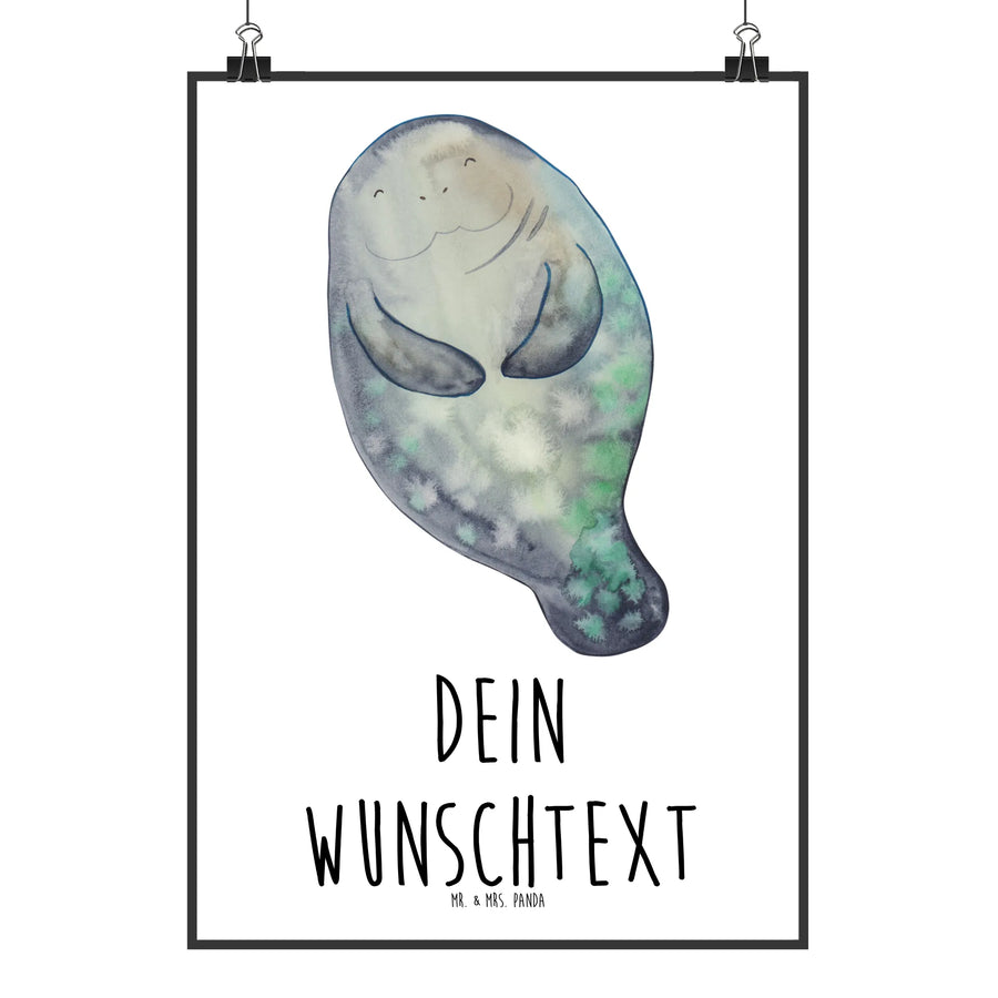 Personalised poster manatee happy - DIN A0 - White