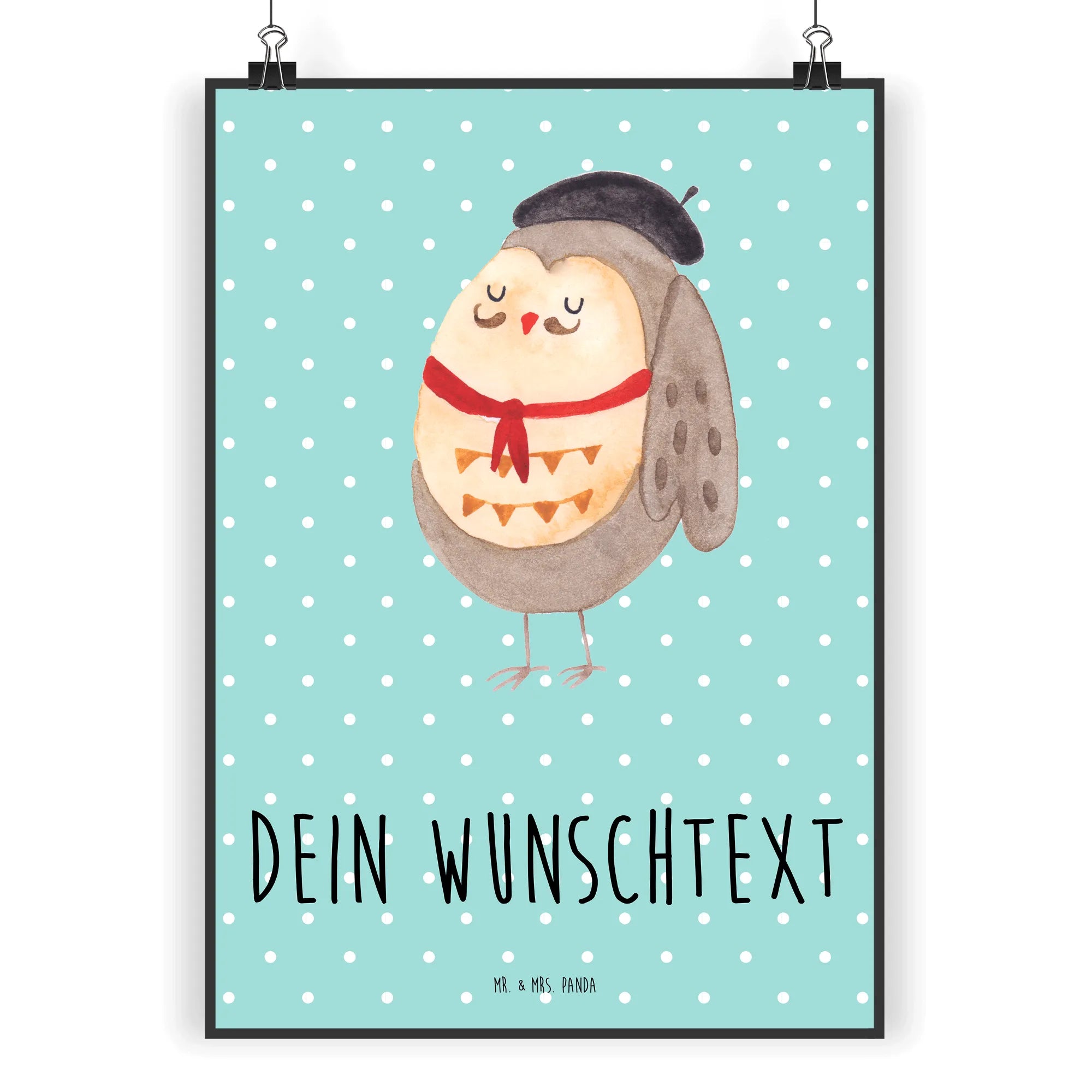 Personalised poster Owl France - DIN A0 - Turquoise Pastel