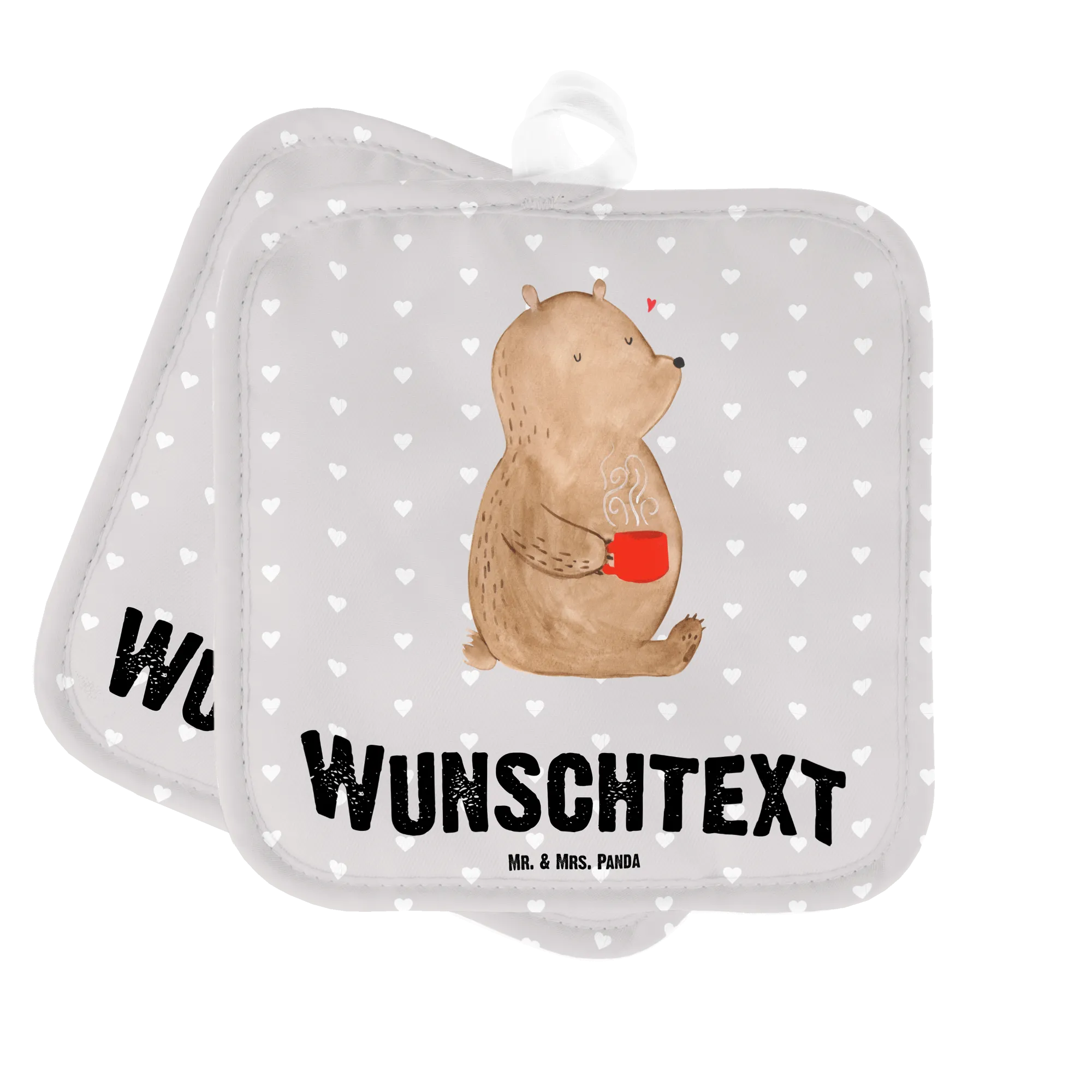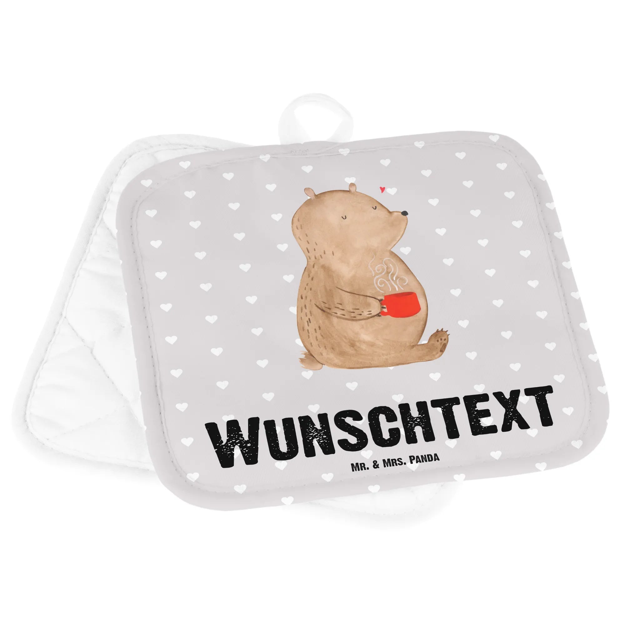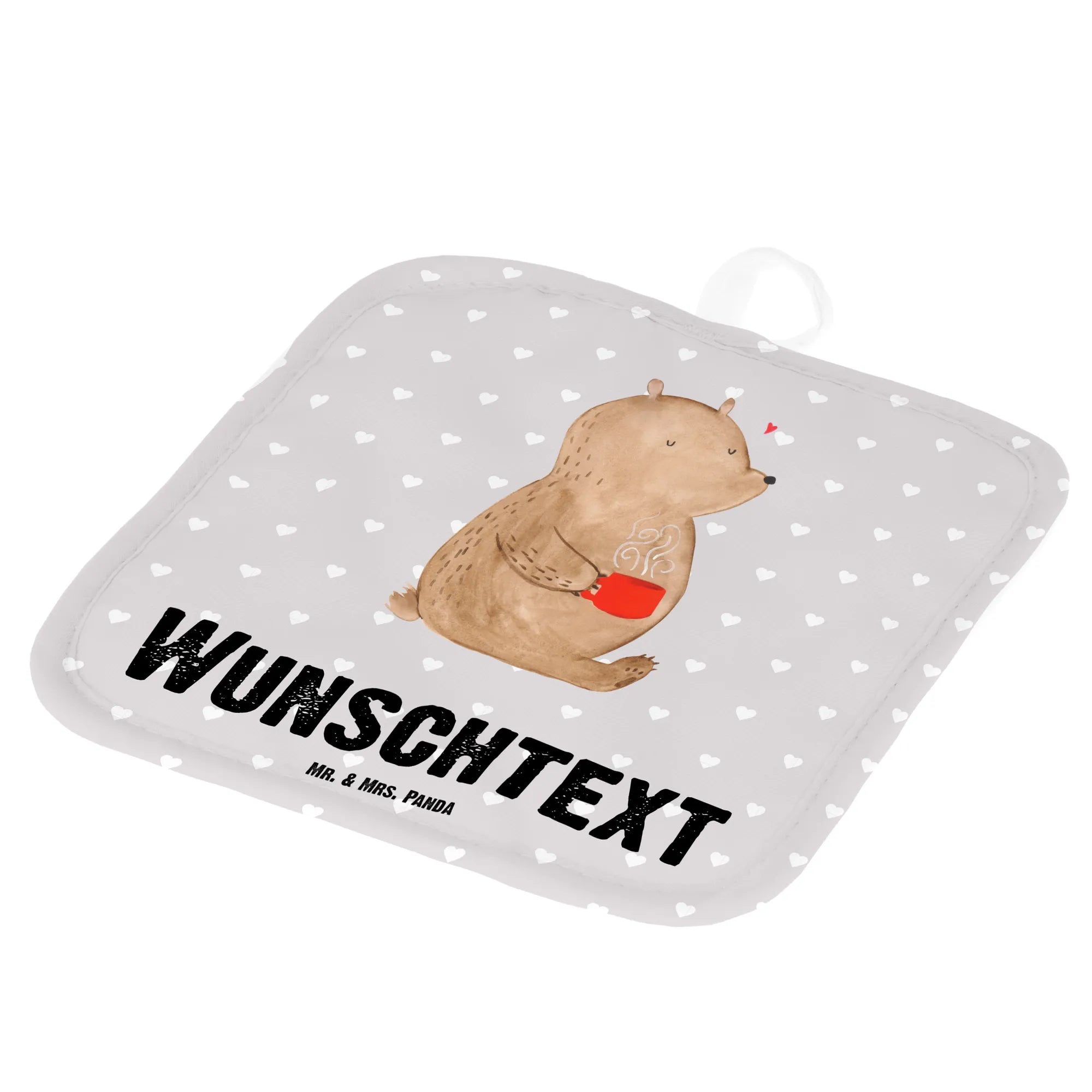 Personalised pot holder bear morning coffee