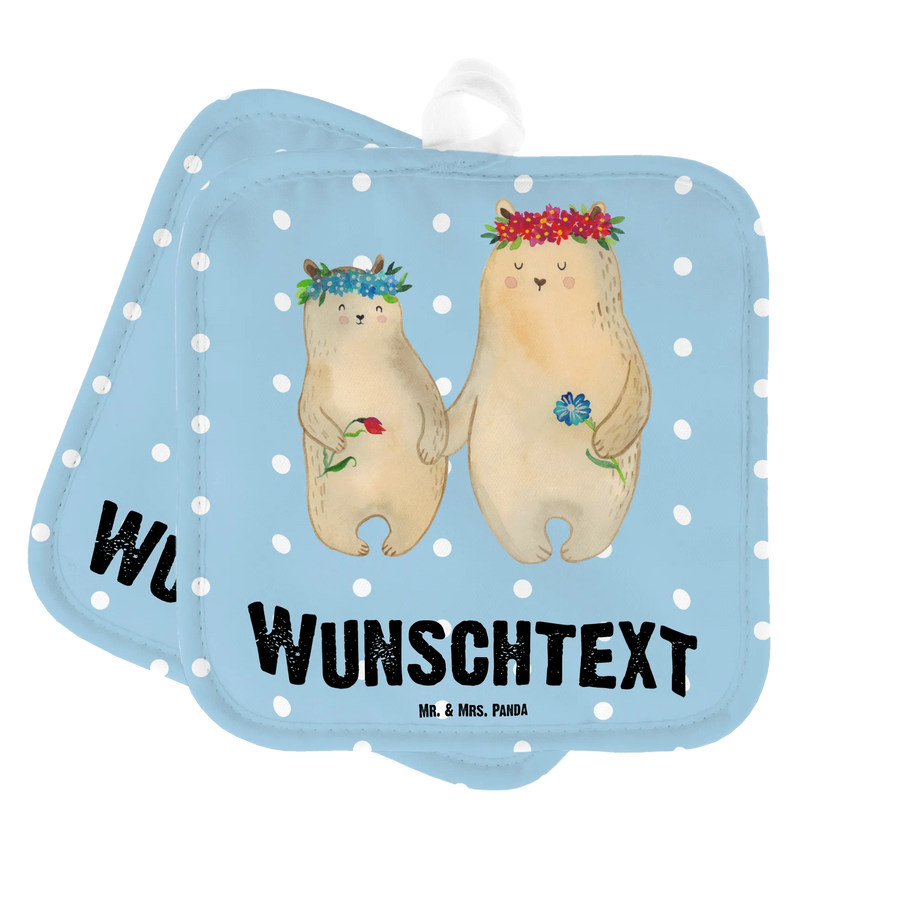 Personalised pot holder Bears with flower crown - Blue Pastel