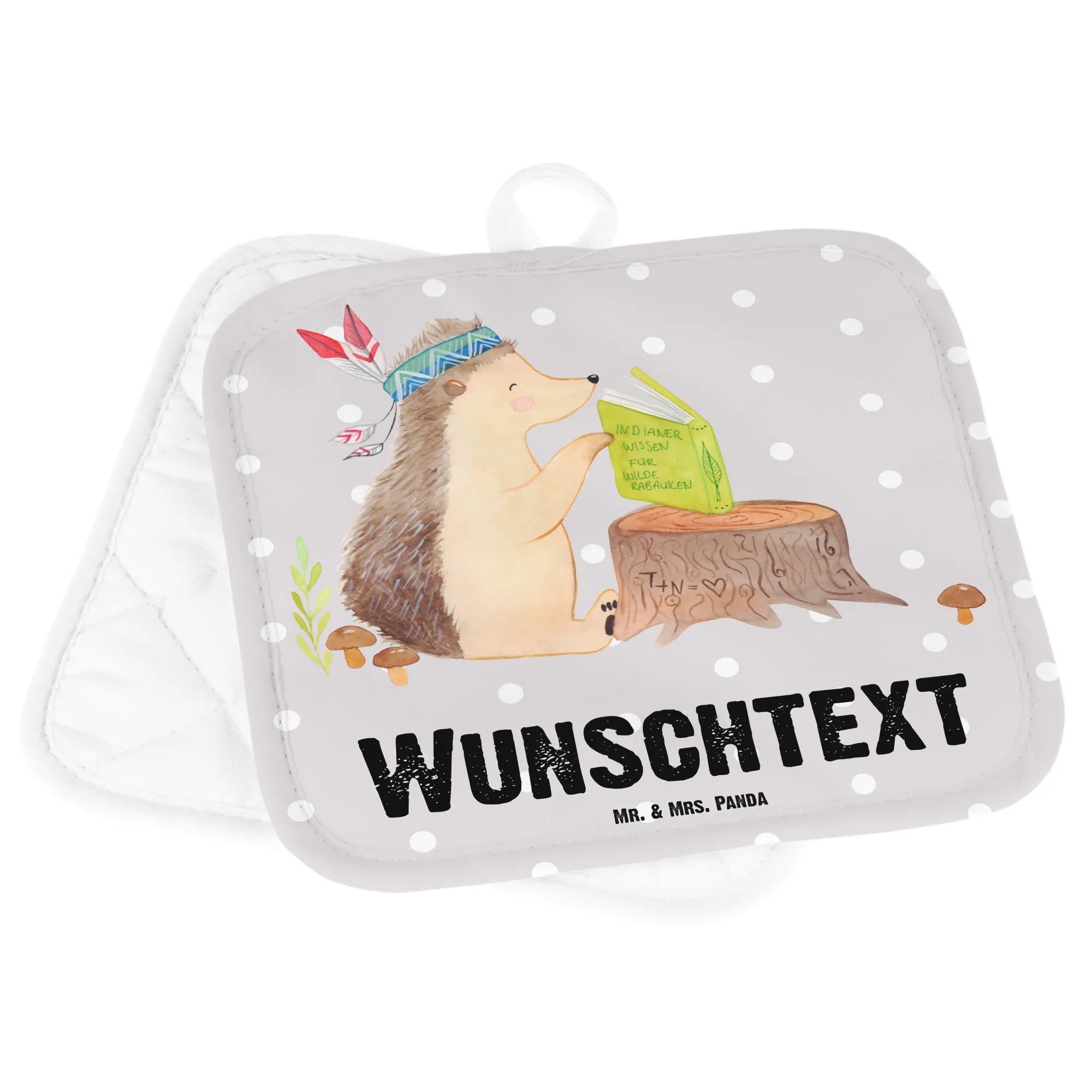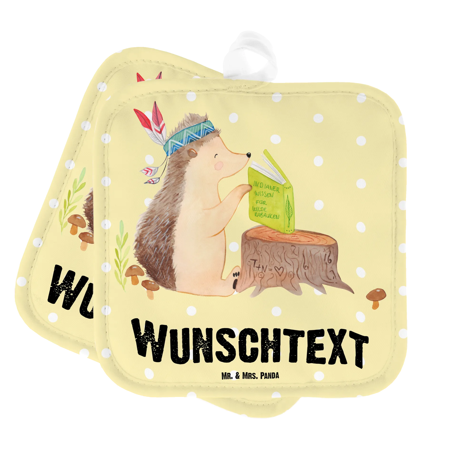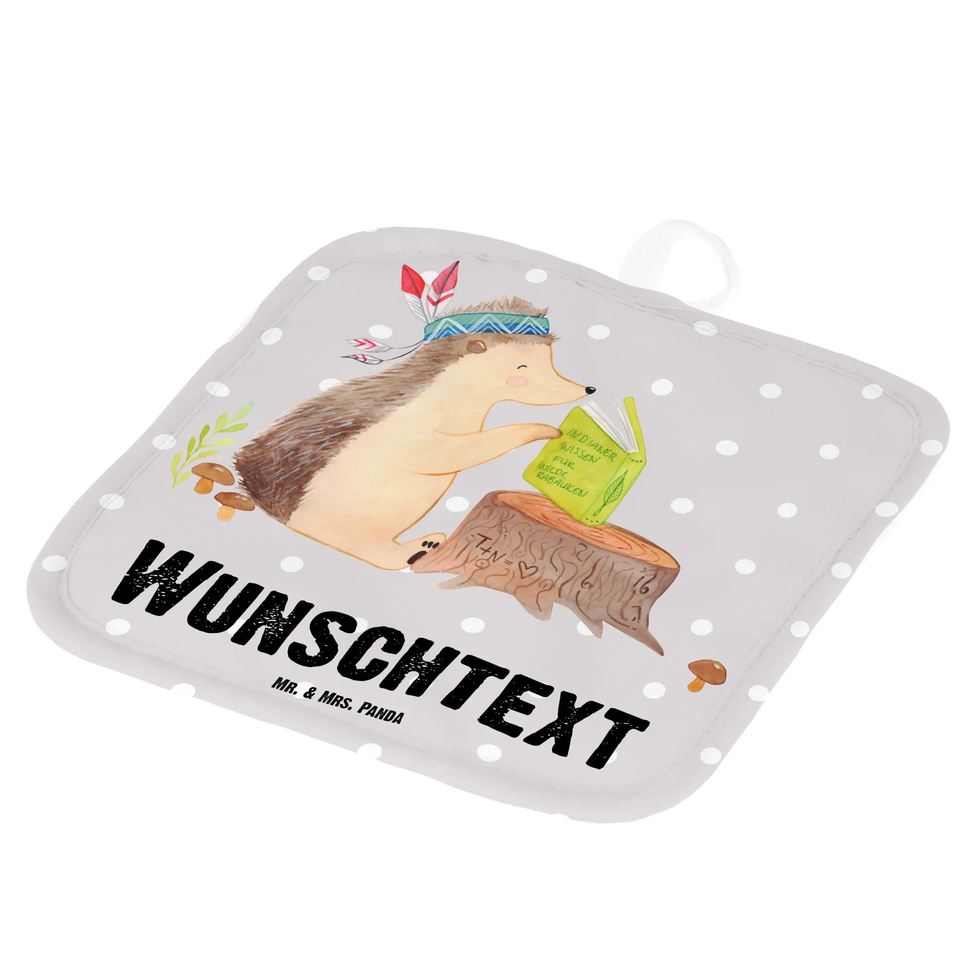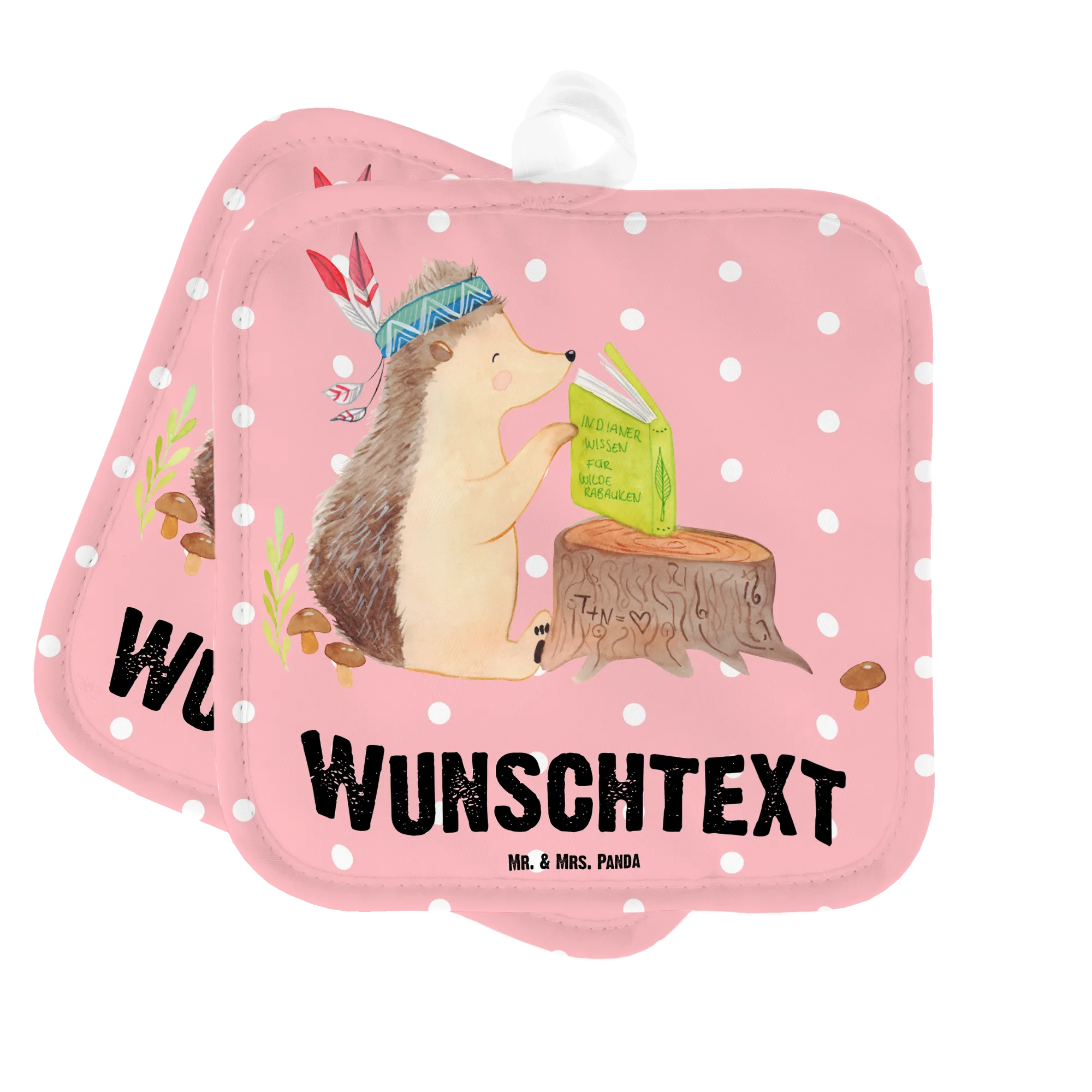 Personalised pot holder Hedgehog feather headdress - Red Pastel