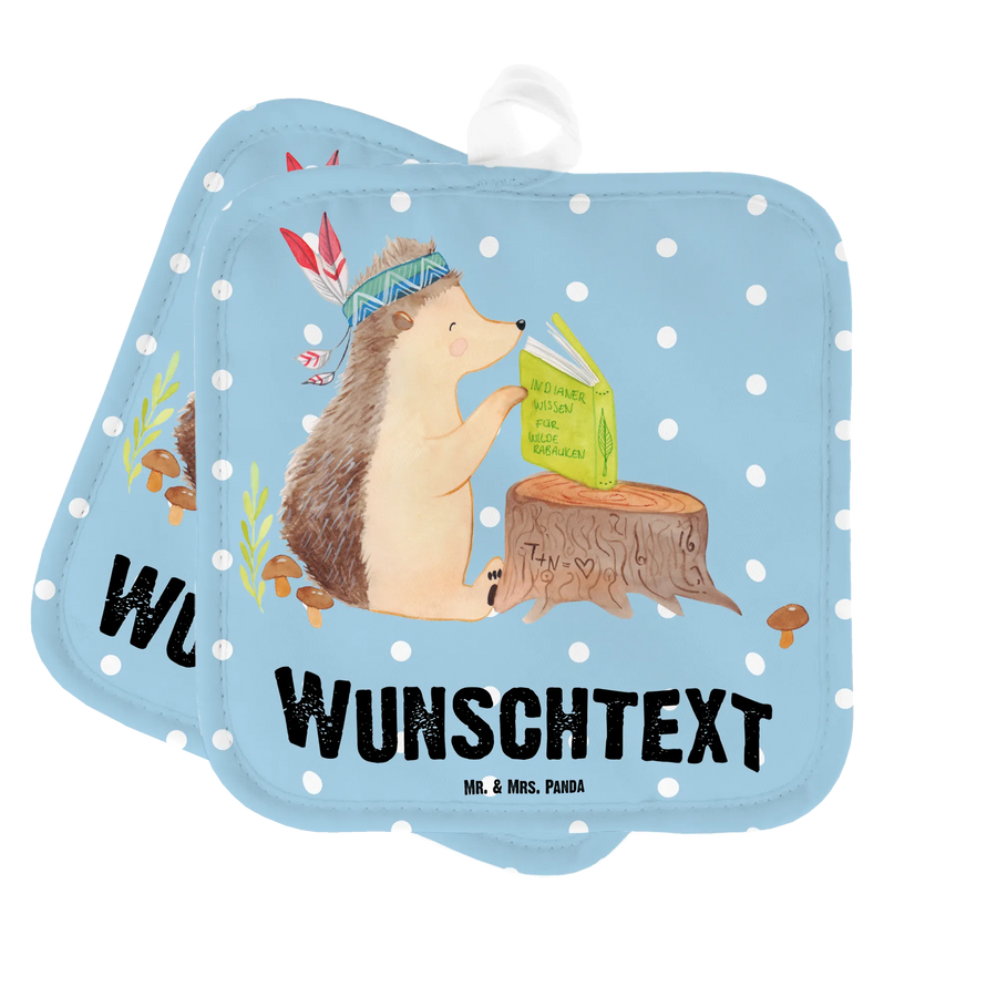 Personalised pot holder Hedgehog feather headdress - Blue Pastel
