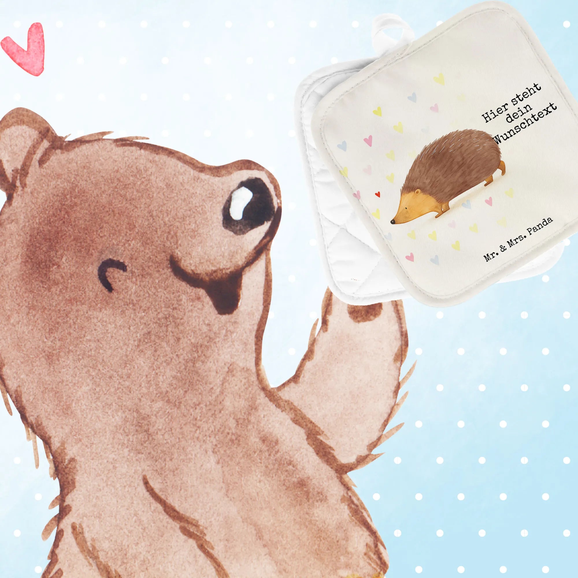 Personalised pot holder Hedgehog hearts Design