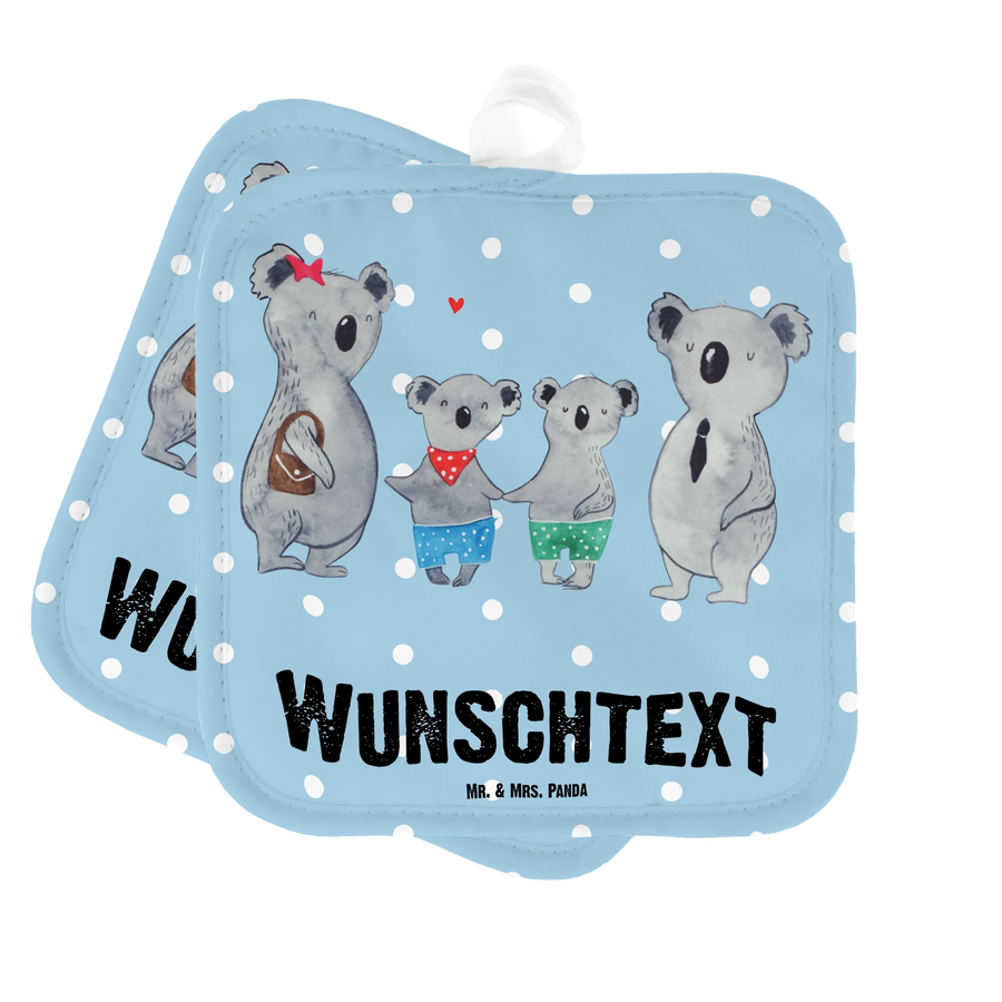 Personalised pot holder Koala family with two kids - Blue Pastel