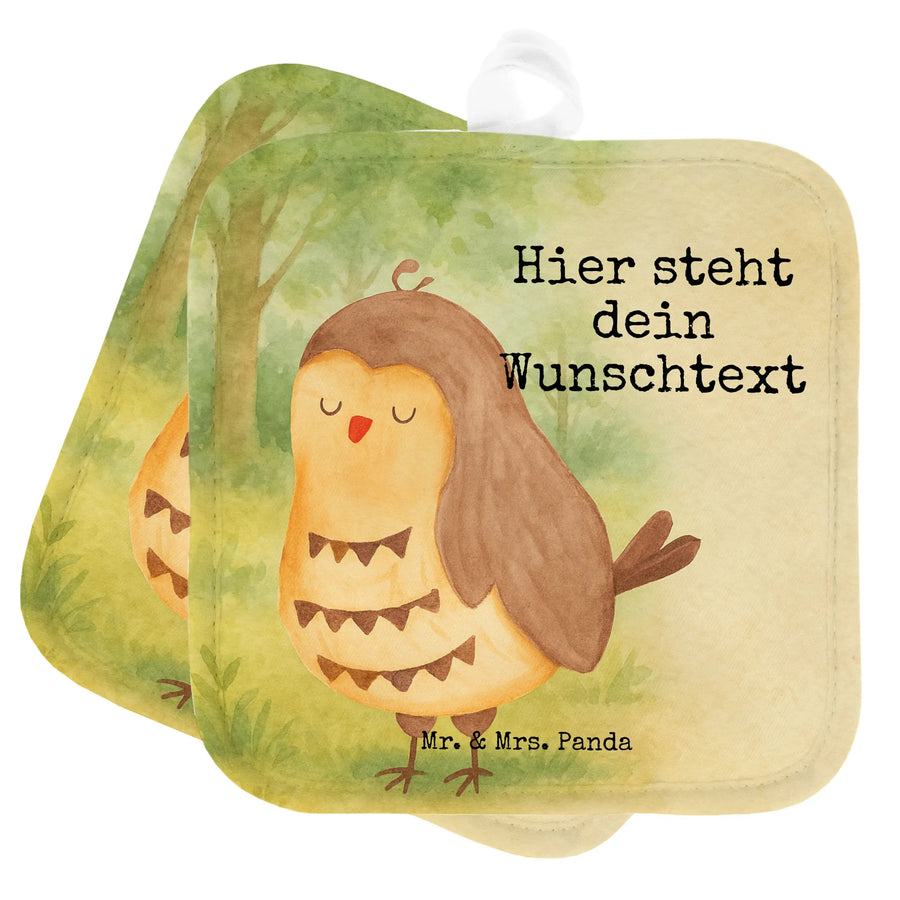 Personalisierte Topflappen Eule Zufrieden Design